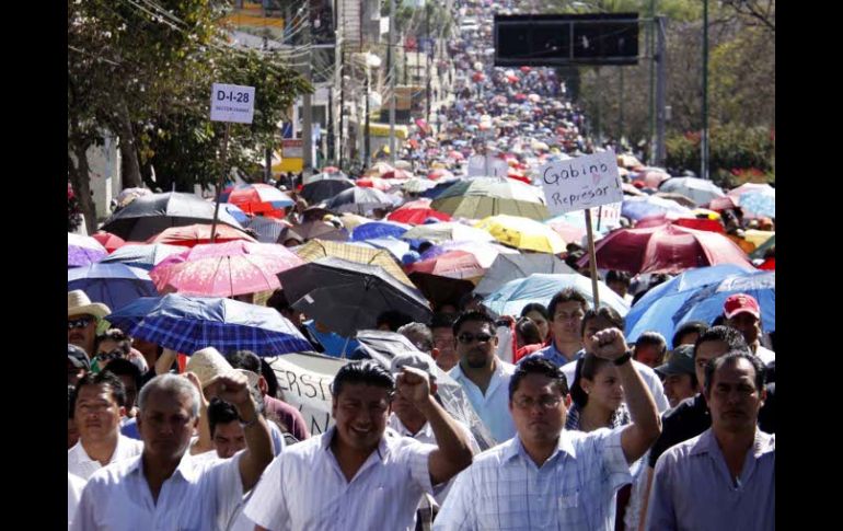 México | Gobierno pide retomar pláticas, suspendidas tras enfrentamientos Llaman a magisterio de Oaxaca a restablecer diálogo Gobierno pide retomar pláticas, suspendidas tras enfrentamientos de la semana pasada Por: NTX 20 de febrero de 2011 - 20:13 hs Integrantes del sindicato de maestros realizaron una marcha en Oaxaca la semana pasada. ARCHIVO / - Anuncia el SNTE Oaxaca más paros y marcha- Procuraduría de Oaxaca investiga enfrentamientosOAXACA, OAXACA (20/FEB/2011).- El Gobierno de Oaxaca llamó a la Sección 22 del SNTE a continuar las mesas de diálogo suspendidas esta semana, luego de los hechos de violencia suscitados en el Centro Histórico de esta capital. La administración estatal, encabezada por Gabino Cué, hizo un llamado “a las maestras y maestros del estado, para continuar las mesas de diálogo que permitan alcanzar soluciones sólidas, tangibles y perdurables, en un clima de respeto, legalidad y justicia plena”. Manifestó la voluntad de “conocer, analizar y atender los resolutivos derivados de la Asamblea Estatal del Magisterio, verificada este fin de semana”. En dicha asamblea, la gremial, entre otros puntos, exige la renuncia de cuatro integrantes del gabinete y no ejercitar acción penal en contra de los profesores que participaron de los disturbios del pasado martes. “Es necesario hacer un alto en el camino, con el propósito de ratificar compromisos comunes; fortalecer coincidencias, así como integrar una alianza estratégica que permita garantizar condiciones de paz y estabilidad en el estado”, refirió el Gobierno estatal. “Y como consecuencia enfrente con determinación el grave rezago educativo que lastima a Oaxaca”, puntualizó en un comunicado. Manifestó su “respeto irrestricto a los derechos humanos, por lo que nunca ejercitará ningún acto de autoridad que vulnere estas garantías o que agravie a la población con el uso excesivo de la fuerza pública”. Precisó que mantiene en curso las investigaciones “encaminadas a esclarecer los lamentables hechos suscitados el pasado martes 15 de febrero, y fincar las responsabilidades legales a que haya lugar”. “Es clara la voluntad gubernamental de establecer un compromiso irrenunciable con la educación y con las inquietudes del magisterio”, expuso. Sin embargo, señaló que “también lo es la firme e irrenunciable obligación para respetar y hacer respetar la Ley; para garantizar el orden público, así como los derechos humanos, integridad física y el patrimonio de la ciudadanía”, finalizó el gobierno estatal. Temas Estados Oaxaca Sindicatos Recibe las últimas noticias en tu e-mail Todo lo que necesitas saber para comenzar tu día Registrarse implica aceptar los Términos y Condiciones