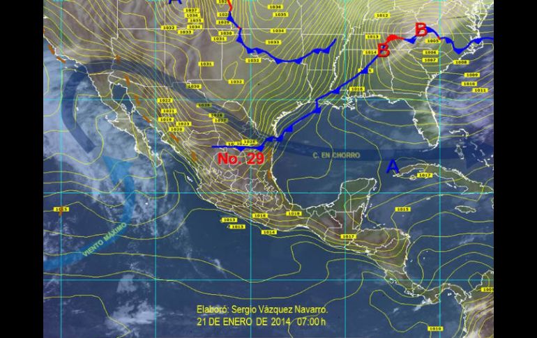 México | Seguirán las bajas temperaturas en gran parte del país Lluvias y niebla por frente frío en el sureste de México Seguirán las bajas temperaturas en gran parte del país Por: NTX 21 de enero de 2014 - 06:46 hs CIUDAD DE MÉXICO (21/ENE/2014).- Los efectos del frente frío 29 causarán nublados con lluvias fuertes en el sureste del país y descenso de temperatura en la mayor parte del territorio mexicano, reportó el Servicio Meteorológico Nacional ( SMN). Expuso en un comunicado que este frente frío se extenderá desde el oriente de los Estados Unidos hasta el noroeste del Golfo de México, y tenderá a desplazarse al noreste, norte y sureste del país y por la tarde llegará al sur de Veracruz. Precisó que la masa de aire polar asociada a este fenómeno traerá consigo descenso de temperaturas en la mayor parte del territorio, además de evento de Norte de corta duración a lo largo del litoral del Golfo de México, con vientos de 40 a 55 kilómetros por hora y rachas de hasta 75 kilómetros por hora. Dichas condiciones climatológicas afectarán al Istmo y Golfo de Tehuantepec con rachas de hasta 80 kilómetros por hora, apuntó el organismo dependiente de la Comisión Nacional del Agua ( Conagua). Explicó que en la Península de Yucatán aumentará la nubosidad, que estará acompañada de lluvias ligeras a moderadas debido al ingreso de humedad del mar Caribe y Golfo de México. Se prevé que continúen temperaturas de cero a cinco grados centígrados con potencial de heladas en las zonas altas de Baja California, Sinaloa, Coahuila, San Luis Potosí, Aguascalientes, Guanajuato, Jalisco, Querétaro, Michoacán, Veracruz, Oaxaca y el Distrito Federal. En tanto, acentuó, las zonas montañosas de Sonora, Chihuahua, Durango, Coahuila, Zacatecas, Nuevo León, Puebla, Estado de México, Hidalgo y Tlaxcala tendrán temperaturas mínimas de menos cinco a cero grados. En su pronóstico por regiones, informó que en el Pacífico Norte habrá clima despejado a medio nublado, temperaturas muy frías por la mañana y la noche, templadas a cálidas durante el día y viento del noreste de 25 a 35 kilómetros por hora con rachas. Para el Pacífico Centro se espera ambiente despejado a medio nublado, temperaturas frescas por la mañana y la noche, templadas a cálidas durante el día y viento del oeste y noreste de 25 a 40 kilómetros por hora. Mientras que en el Pacífico Sur dominará cielo medio nublado, probabilidad de precipitaciones ligeras de 20 por ciento y fuertes en Chiapas. Además, esa región registrará temperaturas frescas a calurosas y viento del norte de 30 a 45 kilómetros por hora con rachas de hasta 90 kilómetros por hora en el Istmo y Golfo de Tehuantepec. En el Golfo de México persistirá cielo medio nublado, probabilidad de lluvias moderadas a fuertes de 60 por ciento en el sur de la región, nieblas en zonas de montaña, temperaturas de frías a templadas y viento del norte de 45 a 60 kilómetros por hora con rachas de hasta 80 kilómetros por hora. En la Península de Yucatán se tendrá cielo despejado a medio nublado, potencial de precipitación ligera a moderada de 20 por ciento, temperaturas templadas a cálidas durante el día y viento del norte de 25 a 35 kilómetros por hora con rachas. Para la Mesa del Norte se prevé cielo despejado a medio nublado con heladas matutinas, temperaturas muy frías por la mañana y la noche, frescas a templadas durante el día y viento de dirección variable de 25 a 40 kilómetros por hora. La Mesa Central mostrará clima despejado a medio nublado, temperaturas frías a muy frías por la mañana y la noche con heladas, así como frescas a templadas durante el día y viento del noreste de 25 a 40 kilómetros por hora. El SMN informó que la temperatura máxima se registró este lunes en Josefa Ortiz de Domínguez, Sinaloa, con 38 grados centígrados y la mínima en Temosáchic, Chihuahua, con menos 7.6 grados. Para las próximas 24 horas se esperan intervalos de chubascos con tormentas fuertes en Chiapas y Tabasco, lluvia moderada con chubascos aislados en Veracruz y llovizna o lluvia ligera en Campeche, Guerrero, Hidalgo, Oaxaca, Puebla y Quintana Roo. Temas Conagua Estados Frío SMN Lluvias en el país Lee También Mundial Sub-20: EU golea a Italia y enfrentará a Marruecos Viernes de tormentas en Guadalajara; aparecerán a esta hora LLUVIA en GDL por la noche, pronóstico del clima para hoy, 9 de octubre Tormenta tropical "Raymond" mantiene en alerta a estos estados el fin de semana Recibe las últimas noticias en tu e-mail Todo lo que necesitas saber para comenzar tu día Registrarse implica aceptar los Términos y Condiciones