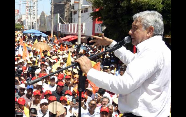 México | Su propuesta es lograr que la economía nacional registre crecimiento de seis por ciento López Obrador promete impulsar actividades productivas en México López Obrador asegura que el cambio se hará cuando llegue a la Presidencia; entre sus propuestas está la creación de un millón 200 mil empleos cada año Por: SUN 14 de abril de 2012 - 16:18 hs El candidato presidencial de la coalición Movimiento Progresista en un mitin con simpatizantes de su partido. EL UNIVERSAL / GUASAVE, SINALOA (14/ABR/2012).- El candidato presidencial de la coalición Movimiento Progresista, Andrés Manuel López Obrador, se comprometió hoy aquí a impulsar las actividades productivas y para ello, dijo, se fortalecerán los ingresos públicos y acabarán los privilegios fiscales. Al encabezar un mitin en esta ciudad, el político tabasqueño aseguró que el próximo 1 de julio se iniciará la verdadera transformación que necesita el país, “con un verdadero cambio”. Asimismo, ofreció que de llegar a la Presidencia de la República, desarrollará políticas públicas que permitan que el presupuesto del gobierno federal sea manejado con honradez y distribuido con justicia. Reiteró que su propuesta es lograr que la economía de México registre un crecimiento de seis por ciento al año. De la misma manera, ofreció que como presidente de México, se propone crear al menos un millón 200 mil empleos cada año. Dijo que “no hace falta quitarle a los ricos para darle a los pobres”, pero aseguró que será fiel guardián del presupuesto del gobierno “para beneficiar a todos”. López Obrador citó que no sólo por razones morales “sino para tener recursos que permitan desarrollar al país”, ajustará en 800 mil millones de pesos el presupuesto federal. Enumeró que reducirá la nómina del gobierno en 300 mil millones con la reducción de sueldos de integrantes del gabinete, así como de diputados federales, senadores, jueces, magistrados y otros más “que ganan el doble que (Barack) Obama”. Además, indicó que destinará cifra similar para el combate a la corrupción, “que es lo que mas ha dañado a México y es causa de la desigualdad entre los mexicanos y de la inseguridad y violencia en el país”. En su visita a Guasave, el candidato de los partidos de izquierda de México estuvo acompañado por el dirigente nacional del PRD, Jesús Zambrano; la candidata al Senado, Ana Gabriela Guevara, sí como por otros abanderados a senadores y diputados federales. Temas PRD AMLO Elecciones México 2012 Lee También Día de Muertos 2025: ¿Dónde comprar papel picado en CDMX? México vs Corea del Sur: EN VIVO, dónde ver el partido por el Mundial Sub-17 femenil Desfile de Alebrijes Monumentales, ruta y hora del evento HOY en CDMX Así es como el minimalismo ha impactado en la cultura mexicana Recibe las últimas noticias en tu e-mail Todo lo que necesitas saber para comenzar tu día Registrarse implica aceptar los Términos y Condiciones