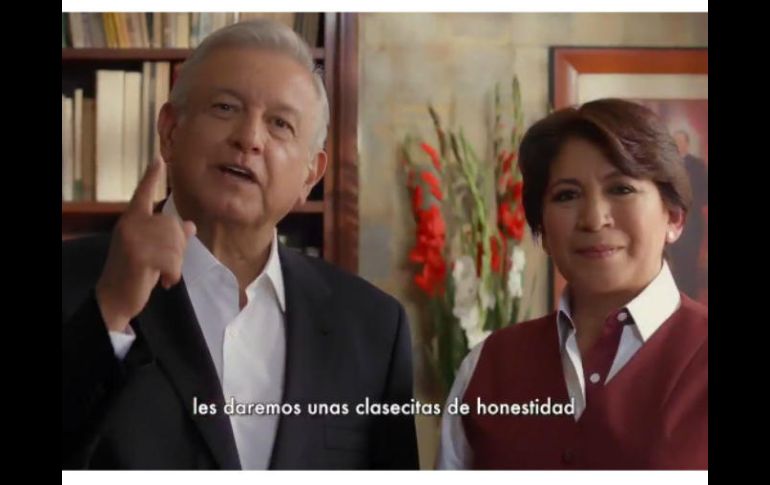 CIUDAD DE MÉXICO (05/ABR/2017).- En un nuevo spot difundido en sus redes sociales con motivo del inicio de la campaña en el Estado de México, el presidente de Morena, Andrés Manuel López Obrador, afirmó que con la candidata de su partido, la maestra Delfina Gómez, le darán unas "clasesitas" de honestidad a los corruptos.En el mensaje de 30 segundos, la candidata Delfina Gómez expone que "en el Estado de México existe una alianza que busca continuar con el saqueo personal a costa del pueblo. Una alianza con la corrupción".Por su parte, López Obrador señala que la alianza de Morena "es más fuerte". "Es una alianza con el pueblo, una alianza con la honestidad, con el compromiso de no mentir, no robar, de no traicionar"."Con la maestra Delfina les daremos unas "clasesitas" de honestidad a estos corruptos", indicó el líder de Morena.