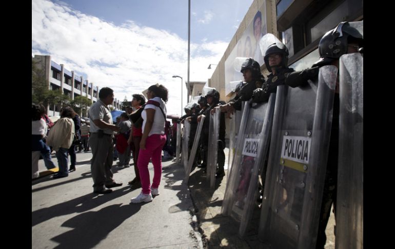 México | Mancera advierte sobre días ''complejos'' para los habitantes capitalinos Maestros cierran Periférico frente a televisora Si llega a la capital un mayor número de profesores será necesaria una estrategia conjunta con las autoridades federales para dar garantía a los habitantes Por: SUN 27 de agosto de 2013 - 13:35 hs Miembros de la CNTE también se manifestaron afuera de las instalaciones de la empresa Televisa, ubicadas en Avenida Chapultepec. SUN / CIUDAD DE MÉXICO (27/AGO/2013).- Un grupo de aproximadamente dos mil integrantes de la Coordinadora Nacional de Trabajadores de la Educación ( CNTE) bloqueó desde las 13:00 horas, aproximadamente, ambos sentidos de Anillo Periférico, a la altura de Picacho-Ajusco, donde se ubica Tv Azteca. Los maestros también se manifestaron en frente a las instalaciones de Televisa, en el cruce de avenida Chapultepec y Balderas. El lugar fue cercado por elementos del grupo de Granaderos de la Secretaría de Seguridad Pública del Distrito Federal (SSP-DF). La CNTE se manifiesta frente a las televisoras para exigir que difundan “información verídica” de su protesta contra la reforma educativa. De igual forma, se sumaron al rechazo a la reforma energética, en particular a la apertura de Petróleos Mexicanos ( Pemex) al capital extranjero. El jefe de Gobierno del Distrito Federal, Miguel Ángel Mancera, consideró que si llega a la capital un mayor número de profesores -como 25 mil o 30 mil que estuvieron el viernes- es necesaria una estrategia conjunta con las autoridades federales para dar garantía a los habitantes. “Un trabajo coordinado y compartido con la federación para todas y cada una de las áreas estratégicas, para los recintos federales. Un trabajo coordinado y el llamado a que se pueda solucionar de manera pacífica este conflicto". Al término de presentar la nueva aplicación móvil "AGUMóvil", para que a través de los teléfonos celulares se cuente con información para utilizar el transporte público y plantones, el mandatario capitalino indicó que seguirá en comunicación con las autoridades federales por si llega un mayor número de profesores, como ya se ha anunciado. Puntualizó que su gobierno seguirá trabajando en tres líneas: cuidar la integridad física de los ciudadanos -que es su obligación-, insistir en el diálogo como ruta de solución del conflicto y que haya una coordinación con las autoridades federales. Mancera indicó que "van a ser días muy complejos para la Ciudad de México" sobre todo en la víspera de la celebración del primer informe de gobierno del Presidente de México, Enrique Peña Nieto, que será en el Campo Marte. "Esa es la agenda que sabemos se tiene, que el informe será ahí en Campo Marte, también hay una agenda que ha hablado de una marcha que se va a desarrollar ese mismo día. Y bueno pues, van a ser días complejos para la Ciudad de México", externó. Temas Estados Reforma Educativa CNTE Lee También ALERTA en Jalisco por formación de ciclón "Raymond" Esta es la última guerra que Trump resolvió, según él mismo Las guerras que Trump dice haber resuelto y por las que merece el Nobel ¿Cuándo la tormenta tropical "Raymond" estará cerca de Jalisco? Recibe las últimas noticias en tu e-mail Todo lo que necesitas saber para comenzar tu día Registrarse implica aceptar los Términos y Condiciones