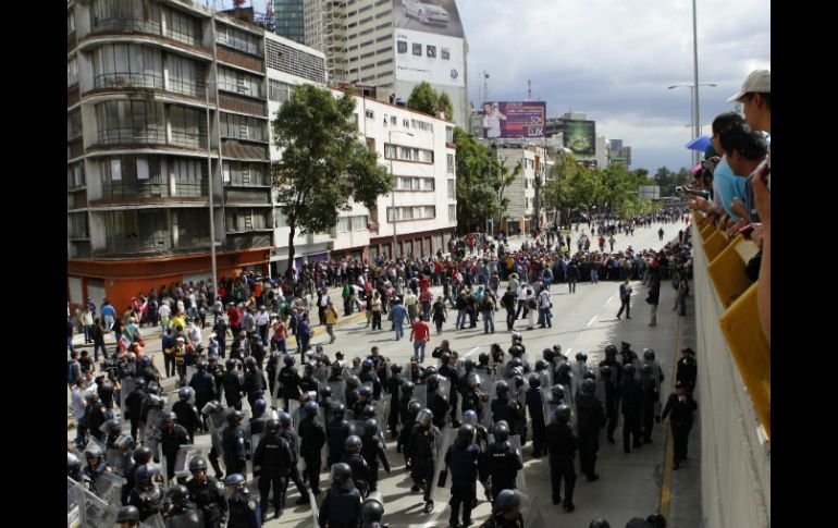 México | Durante 10 horas estuvieron en las calles realizando diversas movilizaciones Maestros de la CNTE llegan a su plantón en el Zócalo Durante 10 horas estuvieron en las calles realizando diversas movilizaciones Por: SUN 11 de septiembre de 2013 - 20:04 hs Elementos de la SSPDF impidieron que los maestros disidentes realizaran un bloqueo en el Periférico. EFE / CIUDAD DE MÉXICO (11/SEP/2013).- El contingente de maestros de la Coordinadora Nacional de Trabajadores de la Educación ( CNTE) arribó al Zócalo capitalino luego de 10 horas de marchas y bloqueos sobre Paseo de la Reforma, de este miércoles. La circulación vial de Reforma ya se abrió, por lo que se restableció la circulación de vehículos. Se prevé que el jueves a las 11:00 horas haya una negociación en la Secretearía de Gobernación (Segob). Los dirigentes informaron que este miércoles les prometieron que sería Miguel Ángel Osorio Chong, titular de la dependencia, quien los atendería en Bucareli. Temas Estados Reforma Educativa Ciudad de México CNTE Manifestaciones en la Cd. de México Recibe las últimas noticias en tu e-mail Todo lo que necesitas saber para comenzar tu día Registrarse implica aceptar los Términos y Condiciones