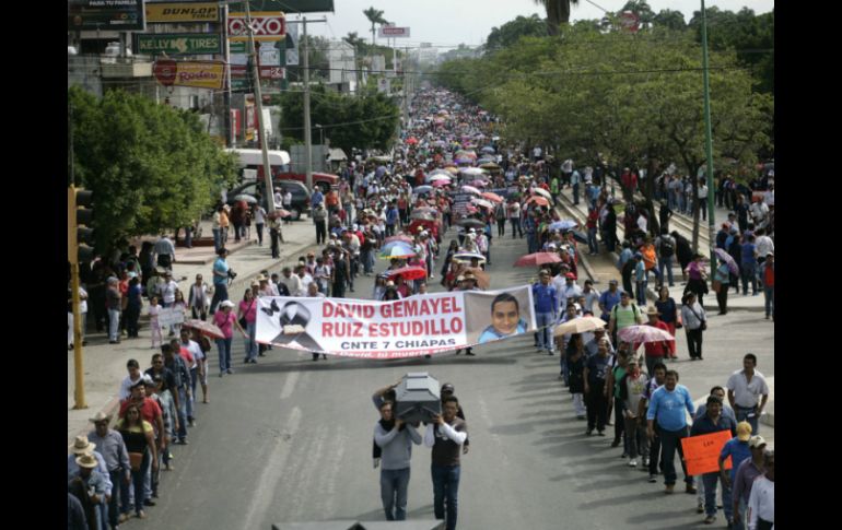 México | Los manifestantes exigen la liberación de sus cuatro compañeros Maestros de la CNTE realizan caravana hacia el Altiplano Los manifestantes exigen la liberación de sus cuatro compañeros quienes se encuentran recluidos en esa cárcel Por: SUN 14 de diciembre de 2015 - 17:46 hs Los maestros de la CNTE han realizado diferentes manifestaciones para exigir la liberación de sus compañeros. SUN / ARCHIVO CIUDAD DE MÉXICO (14/DIC/2015).- Integrantes de la Coordinadora Nacional de Trabajadores de la Educación ( CNTE) realizan una caravana hacia el penal del Altiplano en el Estado de México, donde exigirán la liberación de sus cuatro compañeros de Oaxaca, quienes se encuentran recluidos en esa cárcel de máxima seguridad. Entre automóviles y camiones, la caravana es encabezada por el dirigente de la sección 22, Rubén Núñez, el líder de la CETEG, Ramos Reyes, así como de familiares de los maestros detenidos. Efraín Picaso Pérez, Othón Nazariega, Juan Carlos Orozco y Abel Roberto Jiménez fueron detenidos al ser vinculados con varios delitos federales, cuyas órdenes de aprehensión se ejecutaron el pasado 29 de octubre por la Policía Federal. Los manifestantes, quienes partieron del Monumento a la Revolución, realizaron una primera parada en Tecámac, donde realizaron un mitin. Se prevé que mañana martes salgan hacia el penal de El Antiplano, a donde pretenden llegar a las 13:00 horas, para realizar su evento político. Temas Estados Reforma Educativa Ciudad de México CNTE Lee También “El Rey” Trump Por sus hechos los conoceréis Max Verstappen se lleva el Gran Premio de Estados Unidos GP de Estados Unidos • Momentos Destacados • F1 2025 Recibe las últimas noticias en tu e-mail Todo lo que necesitas saber para comenzar tu día Registrarse implica aceptar los Términos y Condiciones