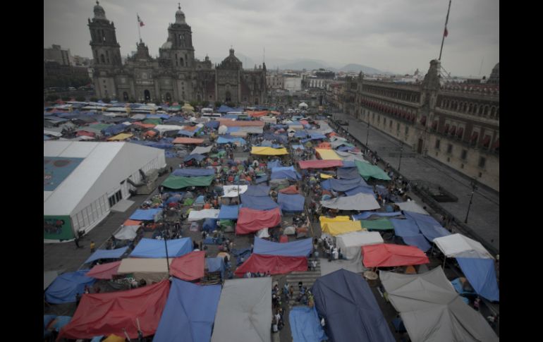 México | Generan conflictos viales y dificultad a los peatones en las calles aledañas Maestros de la CNTE sitian el Zócalo con plantón Generan conflictos viales y dificultad a los peatones en las calles aledañas al primer cuadro de la Ciudad de México Por: SUN 20 de agosto de 2013 - 16:02 hs Las casas de campaña que los manifestantes instalaron ocupa casi la totalidad de la plaza de la Constitución. XINHUA / CIUDAD DE MÉXICO (20/AGO/2013).- El plantón de los maestros de la Coordinadora Nacional de Trabajadores de la Educación ( CNTE) en la plancha del Zócalo capitalino se extendió al circuito vial y hasta los portales de la sede del gobierno del Distrito Federal. Las casas de campaña y plásticos que los manifestantes instalaron ocupa casi la totalidad de la plaza de la Constitución. Incluso, rodean las carpas que el gobierno capitalino montó para el Guardián Urbano y las salas de cine 3D que no han sido desmontadas. Los maestros, con cobijas, se encuentran en las inmediaciones de los accesos de la estación del Metro Zócalo. La extensión del plantón llega a la calle Pino Suárez, entre el circuito vial del Zócalo y la calle Venustiano Carranza. Esta situación dificulta el paso de los peatones y ha generado conflictos viales en las calles aledañas al primer cuadro de la Ciudad de México. También los plásticos están sobre la calle 20 de Noviembre. Sólo dejaron libre la entrada que utiliza el jefe de Gobierno del Distrito del Distrito Federal, Miguel Ángel Mancera. De acuerdo con estimaciones del gobierno capitalino, hay aproximadamente 10 mil maestros que llegaron a la ciudad de México para protestar por las reformas secundarias a la Ley General de Educación que se prevé ocurra este miércoles en la Cámara de Diputados, la cual también está "blindada" con elementos de la Secretaría de Seguridad Pública del DF (SSPDF). Este martes, el gobierno capitalino emitió un comunicado donde manifestó su disposición a coadyuvar cualquier acción para el entendimiento entre el gobierno federal y la CNTE. "Esto, para que el campamento de la CNTE instalado en el Zócalo de la ciudad de México, no siga afectando la vida diaria de millones de personas", se lee en el breve comunicado. Tras reiterar que respeta el derecho a la libre expresión, el gobierno local reprueba los actos violentos que trastoquen la vida diaria de los capitalinos. Temas Estados Ciudad de México CNTE Manifestaciones en la Cd. de México Lee También Estos son los estados en alerta por posible propagación de dengue Despliegan operativo tras bloqueos en Chiapas Este será el costo del Gas Bienestar en la semana del 13 al 18 de octubre Viral: vendedor de carnitas es detenido por matar a extranjero a tubazos en la CDMX Recibe las últimas noticias en tu e-mail Todo lo que necesitas saber para comenzar tu día Registrarse implica aceptar los Términos y Condiciones