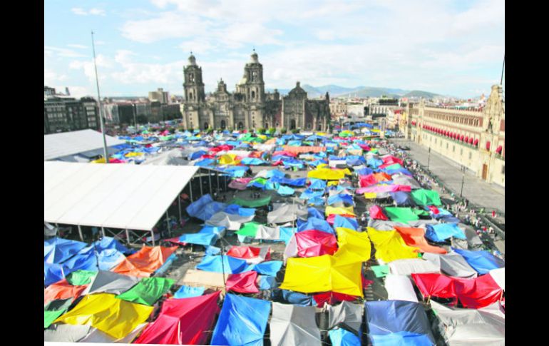 México | La Plaza de la Constitución quedará libre para los festejos del Día de la Independencia Maestros disidentes aceptan desalojar el Zócalo La Plaza de la Constitución quedará libre para los festejos del Día de la Independencia Por: EL INFORMADOR 13 de septiembre de 2013 - 03:52 hs El líder de la Sección 9 de la CNTE en el DF indicó que, una vez que pasen las fiestas patrias, regresarán con las movilizaciones. EFE / CIUDAD DE MÉXICO (13/SEP/2013).- La Coordinadora Nacional de Trabajadores de la Educación (CNTE) y el Gobierno federal llegaron a un acuerdo para que los profesores disidentes liberen el plantón que mantienen en el Zócalo de la Ciudad de México, para se pueda llevar a cabo el Grito de Independencia y el desfile militar los próximos 15 y 16 de septiembre. Se informó que los docentes aceptaron liberar la Plaza de la Constitución porque determinaron que esas fechas son festejos populares y no existen motivos para evitarlos. Francisco Bravo, dirigente de la Sección 9 de la Coordinadora en el Distrito Federal, informó que “todo apunta” a que levantarían el plantón que mantienen en la Plaza de la Constitución, para no interferir en los festejos de las fiestas patrias. “No nos interesa interferir en un acto que consideramos es del pueblo y de la gente; solamente lo estamos transitando con los compañeros de las escuelas porque son los procedimientos de definición”, indicó el dirigente en entrevista para Radio Fórmula. El dirigente disidente indicó que el movimiento magisterial aún no determina si después de las fiestas patrias se regresarán o no a la plancha del Zócalo capitalino, o se van al Monumento a la Revolución. “Ahorita tenemos rondas de asambleas en cada una de las secciones y serán varias las definiciones que tomemos, y entre ellas desde luego el plantón; en todo caso, creo que mañana (hoy) por la tarde-noche tendremos una definición al respecto”, afirmó. Horas antes, el secretario de Gobernación, Miguel Ángel Osorio Chong, había apelado al “amor a la patria” de los líderes de la CNTE para desalojar la plancha del Zócalo capitalino a fin de permitir el Grito de Independencia la noche del 15 septiembre. Al acceder por primera vez —desde que comenzaron las protestas en las calles— a un diálogo directo con los inconformes de la Reforma Educativa, Osorio Chong les pidió presentar a la brevedad un plan para desalojar el Zócalo, y la respuesta de la disidencia magisterial fue que este viernes por la mañana se presentarán a la sede de Segob con su planteamiento. LA CIFRA5 horas permanecieron los integrantes de la Coordinadora a las afueras de la Secretaría de Gobernación • LA CNTE SE RETIRA SIN CONTRATIEMPOS Concluyen movilizacionesCIUDAD DE MÉXICO.- Sin confrontaciones con elementos de Fuerza de Tarea de la SSP capitalina y Fuerzas Federales de Apoyo de la Policía Federal y sólo con consignas, contra las Reforma Educativa y sus leyes secundarias recién aprobadas, concluyeron ayer movilizaciones de unos cinco mil integrantes de la Coordinadora Nacional de Trabajadores de la Educación (CNTE), que duraron apenas cinco horas a las afueras de la Secretaría de Gobernación (Segob). A diferencia del pasado miércoles, ahora el magisterio que sigue de plantón en el Zócalo, se movilizaron en bloques hacia la Segob, donde habrían de sostener un diálogo de negociación con los responsables de la política del interior, que no se concretó y regresaron al Centro Histórico, donde mantienen sus campamentos. Aunque esta vez no hubo enfrentamientos, la Secretaría de Seguridad Pública del DF estuvo movilizando de manera rotatoria a unos mil 500 elementos por las vías donde transitaban y otro tanto, más a marchas y plantones alternos del SME y activistas, quienes intentaron llegar a San Lázaro, pero fueron contenidos. El Economista Temas Segob Política CNTE Manifestaciones en la Cd. de México Recibe las últimas noticias en tu e-mail Todo lo que necesitas saber para comenzar tu día Registrarse implica aceptar los Términos y Condiciones