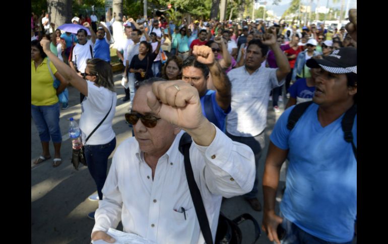 México | Los docentes continuarán hasta que el titular de la SEP cancele la evaluación Maestros en Guerrero advierten que no detendrán su lucha Los docentes continuarán hasta que el titular de la SEP, Aurelio Nuño, cancele la evaluación Por: SUN 11 de diciembre de 2015 - 18:11 hs Esta mañana, alrededor de 200 maestros tomaron una caseta de cobro en protesta por la evaluación. SUN / CHILPANCINGO, GUERRERO (11/DIC/2015).- Maestros de la Coordinadora Estatal de Trabajadores de la Educación de Guerrero (CETEG) se retiraron al campamento que mantienen en Chilpancingo tras casi dos horas de protesta en la caseta de Palo Blanco, sobre la autopista Cuernavaca-Acapulco. Ramos Reyes Guerrero, dirigente del grupo de la CETEG que realizó la toma de la caseta, dijo que su lucha va a continuar hasta que el titular de la SEP, Aurelio Nuño, cancele la evaluación docente. Antonia Morales, la otra dirigente de la Coordinadora, advirtió que se declararán en paro nacional si algún maestro de su organización es despedido. Esta mañana, alrededor de 200 maestros tomaron la caseta de cobro a la altura de la comunidad de Palo Blanco en protesta por la evaluación docente que se está aplicando a unos 700 maestros en el Fórum Mundo Imperial de Acapulco. El grupo de profesores arribó a la caseta de cobro al filo de las 10:00 horas y comenzó a pedir cooperación de 50 pesos a los conductores. Los maestros informaron que lo recaudado es para mantener su movimiento en contra de la reforma educativa. Durante las dos horas que duró la toma de la caseta se incendió un vehículo particular, aunque se aclaró que fue por un cortocircuito. Temas SEP Estados Reforma Educativa Guerrero Manifestaciones en México Evaluación docente Lee También Morelos reporta siete muertos tras lluvias de las últimas horas Liverpool: ¡Laptops en menos de 5 mil pesos que no te puedes perder! Zague aseguró que "no existe calidad" en el futbol mexicano Suman 44 muertos y miles de damnificados por lluvias en cinco estados Recibe las últimas noticias en tu e-mail Todo lo que necesitas saber para comenzar tu día Registrarse implica aceptar los Términos y Condiciones