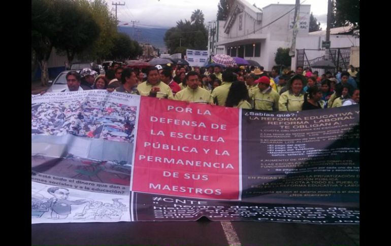 México | Exigen al Congreso local que no apruebe la iniciativa de reforma educativa Maestros en Toluca marchan contra reforma educativa Exigen al Congreso local que no apruebe la iniciativa de reforma educativa Por: SUN 21 de septiembre de 2013 - 16:50 hs En la protesta participaron integrantes del sindicato mexiquense de maestros provenientes de diversos municipios. TOMADA DE @ja_reyesca / TOLUCA, ESTADO DE MÉXICO (21/SEP/2013).- Cientos de maestros del Estado de México se manifestaron por calles de la capital mexiquense para rechazar la reforma educativa propuesta por el Gobierno Federal. Integrantes del Sindicato de Maestros al Servicio del Estado de México (SMSEM) recorrieron calles de Toluca para exigir al Congreso de la entidad que no apruebe la iniciativa de reforma educativa. Los inconformes aseguraron que la citada reforma vulnera los derechos de los maestros, por lo que pidieron a los diputados mexiquenses rechazarla hasta que se modifique. Recordaron que el gobernador Eruviel Ávila Villegas ofreció que reformas en materia educativa tendrían que contar con la anuencia del magisterio mexiquense. En la protesta participaron integrantes del SMSEM provenientes de diversos municipios de la entidad. Temas Estados Reforma Educativa Estado de México Manifestaciones en México Lee También Lluvias dejan 29 muertos en un día en México Clima en Ciudad de México hoy: el pronóstico para el sábado 11 de octubre de 2025 Trump anuncia aranceles del 100% para China por su postura comercial 'hostil' Hoy No Circula Sabatino: Autos que descansan este 11 de octubre en CDMX y Edomex Recibe las últimas noticias en tu e-mail Todo lo que necesitas saber para comenzar tu día Registrarse implica aceptar los Términos y Condiciones