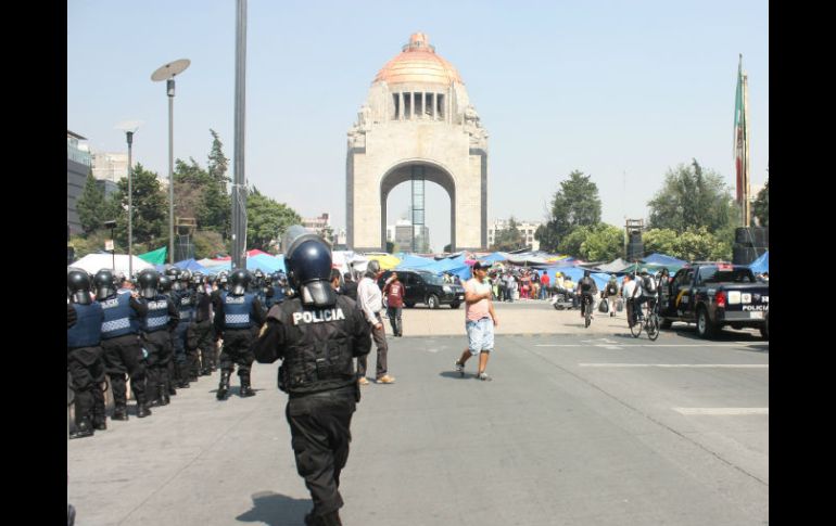 México | Los disidentes de la CNTE tratan de prevenir que policías federales avancen al plantón Maestros forman valla en el Monumento a la Revolución Los disidentes de la CNTE tratan de prevenir que policías federales avancen hacia su plantón Por: SUN 11 de junio de 2015 - 15:45 hs CIUDAD DE MÉXICO (11/JUN/2015).- Elementos de la Policía Federal (PF) se movilizan en grupo, a la altura de Paseo de la Reforma y Bucareli, y observan la llegada de maestros al campamento que tienen en el Monumento a la Revolución. Atrás del grupo de elementos de la PF, quienes portan escudo, se encuentran vehículos blindados, mientras que un grupo de maestros forma una valla humana a la altura del antiguo edificio de la Lotería, sobre avenida de la República, para prevenir que los uniformados quieran avanzar hacia el campamento que está en el Monumento. Helicópteros de la Policía Federal y de la Secretaría de Seguridad Pública del Distrito Federal (SSPDF) sobrevuelan Paseo de la Reforma, por donde marchan integrantes de la Coordinadora Nacional de Trabajadores de la Educación (CNTE.) Antes de las 15:00 horas, cuando los maestros decidieron regresar hacia el plantón, luego de permanecer cerca de una hora a la altura de la glorieta del Ángel de la Independencia, las aeronaves comenzaron un bajo sobrevuelo, lo que llamó la atención de profesores y de personas que pasan por esa vialidad. Temas Estados Distrito Federal CNTE Manifestaciones en la Cd. de México Policía Federal Recibe las últimas noticias en tu e-mail Todo lo que necesitas saber para comenzar tu día Registrarse implica aceptar los Términos y Condiciones