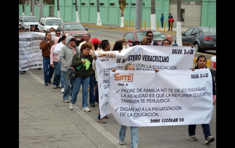 México | Integrantes del SNTE piden que les respeten sus derechos laborales Maestros marchan contra reforma educativa en Veracruz y Guerrero Integrantes del SNTE piden que les respeten sus derechos laborales Por: SUN 17 de enero de 2013 - 16:59 hs Maestros de la Sección 32 del SNTE protestan en el bulevar costero de la ciudad de Veracruz. SUN / XALAPA, VERACRUZ (17/ENE/2013).- Un grupo de profesores de la Sección 32 del Sindicato Nacional de Trabajadores de la Educación (SNTE) protestaron en el bulevar costero de la ciudad de Veracruz en contra de la reforma educativa, aprobada por la Cámara de Diputados y por 20 congresos locales. Los sindicalizados se agruparon en la Plaza de la Soberanía, en la avenida Manuel Ávila Camacho, de donde salió el contingente compuesto por unas 200 personas que caminaron con mantas pidiendo que les respeten sus derechos laborales. Los catedráticos arribaron a la Plaza de los Maestros, ubicada a unos metros del Club de Yates del Puerto, en donde gritaron algunas consignas mientras entorpecían el tráfico de esa zona. Víctor Manuel Paz Cinta, uno de quienes encabezaban la manifestación, dijo que están en contra de desaparecer la herencia de plazas laborales a sus hijos o familiares, ya que afirman que ese es un derecho logrado a través de los años. Afirmó que él y sus compañeros no rechazan la evaluación pero sí que antes de eso les mejoren sus condiciones laborales. Los maestros permanecieron por espacio de media hora en la Plaza de los Maestros y se retiraron advirtiendo que si no los toman en cuenta, regresarán a las calles. También marchan en Guerrero En el municipio de Atoyac de Álvarez en la Costa Grande del estado, maestros del Sindicato Nacional de Trabajadores de la Educación (SNTE) marcharon por la avenida principal en rechazo a la reforma educativa que fue aprobada por el Congreso de Guerrero sin consensar al magisterio por lo que consideran que atenta contra los derechos de los trabajadores. Los más de 300 profesores del SNTE, eran encabezados por el coordinador municipal de la sección 14 de este SNTE, Pedro López Espinoza donde se concentraron en el zócalo del municipio de Atoyac de Álvarez para acordar marchar por las calles del poblado y protestar en contra de cualquier modificación que se le haga a la reforma educativa. Los profesores lanzaron consignas contra el gobierno federal por perjudicar al magisterio y lanzar una nueva reforma educativa. "Peña escucha, el magisterio, está en su lucha", fueron las consignas que se dejaron escuchar durante la movilización de maestros que transitaron por las calles principales del municipio de Atoyac de Álvarez. Señalaron que el gobierno pretende desaparecer las escuelas públicas y cobrar cuotas de inscripción a los padres de familia y no están de acuerdo con ello. "No estamos de acuerdo a la evaluación, la reforma educativa atenta contra el derecho laboral, y las conquistas de los Trabajadores de la Educación, y economía familiar, ha provocado gran inconformidad y el inicio de una etapa de protestas", señalaron los profesores. Temas Estados Veracruz Reforma Educativa Lee También CFE restaura el 98.7% del suministro eléctrico en Estados afectados por las lluvias Comerciantes afectados por lluvias recibirán ESTE apoyo económico Asaltan a alcalde electo de Veracruz; le quitan camioneta, pero sale ileso Entregarán apoyos a damnificados por las lluvias en ESTAS fechas Recibe las últimas noticias en tu e-mail Todo lo que necesitas saber para comenzar tu día Registrarse implica aceptar los Términos y Condiciones