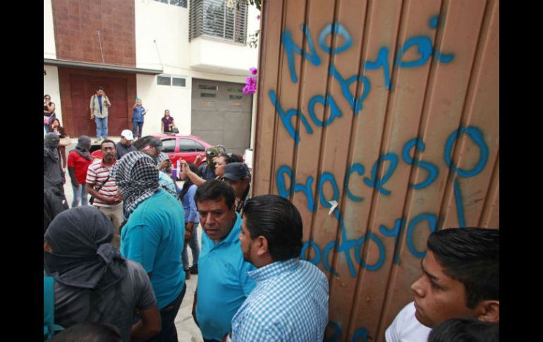 México | Reiteran que no regresarán a sus actividades hasta que aparezcan los normalistas Maestros realizan pintas en oficinas 'clausuradas' en Guerrero La CETEG reiteran que no regresarán a sus actividades hasta que aparezcan los normalistas Por: SUN 7 de enero de 2015 - 16:25 hs Llaman a los trabajadores de las dependencias estatales a unírseles en su lucha. SUN / ARCHIVO CHILPANCINGO, GUERRERO (07/ENE/2015).- Maestros de la Coordinadora Estatal de Trabajadores de la Educación de Guerrero (CETEG) realizan un recorrido por las dependencias, oficinas e institutos federales que mantienen "clausurados" para reiterar su demanda que no pueden regresar a las actividades hasta que aparezcan con vida los 43 normalistas de Ayotzinapa. A bordo de cinco camionetas, la "avanzada" de los maestros disidentes se transportó hacia la junta vocal ejecutiva del Distrito 07 del Instituto Nacional Electoral (INE). Ahí realizaron una serie de pintas como " no habrá elecciones". Antes se encontraron con una patrulla de Protección Civil del municipio que conducía su titular Alfredo Cuenca, donde pintaron el número 43 y advirtieron que si lo quitaban se llevarían la unidad. A unos metros se encuentra una oficina del presidente municipal de Chilpancingo, Mario Moreno, de quien dijeron "prepara los cuchupos" para la próxima elección. Antes de su retirada, por primera vez llegó un grupo de policías antimotines estatales a bordo de dos autobuses. En su recorrido también llegaron a la Secretaría de Finanzas de la Secretaría de Educación de Guerrero donde desalojaron a los trabajadores y realizaron unas pintas. "Les hacemos un llamado de conciencia para que se unan a nuestra lucha y se solidaricen con la normal de Ayotzinapa". Tras un diálogo con los trabajadores estatales, éstos abandonaron el inmueble en la colonia Universal. "Prófugos del gis", les gritaban los maestros disidentes a sus compañeros que se dedican a actividades administrativas. Además, los inconformes rompieron unos cristales en la sede de la Sección 14 del Sindicato Nacional de Trabajadores de la Educación (SNTE). Temas Estados Guerrero Manifestaciones en México Desapariciones y denuncias Caso Ayotzinapa Recibe las últimas noticias en tu e-mail Todo lo que necesitas saber para comenzar tu día Registrarse implica aceptar los Términos y Condiciones