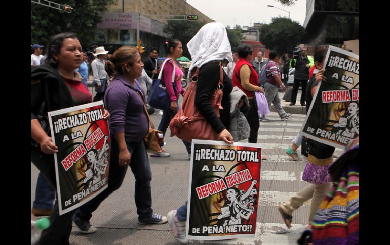 México | Además, la CNTE mantiene su plantón en el Zócalo Maestros se concentran afuera del Senado Se debaten las leyes secundarias de la reforma educativa; ala disidente del magisterio se oponen Por: SUN 22 de agosto de 2013 - 08:49 hs Los maestros disidentes también se movilizan hacia las inmediaciones de la Cámara de Diputados. SUN / CIUDAD DE MÉXICO (22/AGO/2013).- Miembros de la Coordinadora Nacional de Trabajadores de la Educación (CNTE), ala disidente del magisterio, se concentraron la mañana de hoy jueves sobre la lateral de Paseo de la Reforma e Insurgentes, en la sede del Senado de la República, en el marco de la discusión de las leyes secundarias de la reforma educativa. Además, los maestros disidentes se movilizaron hacia las inmediaciones de la Cámara de Diputados, en San Lázaro, donde ayer no se pudo instalar la sesión de Congreso General del Congreso de la Unión para el nuevo periodo extraordinario. Además, la CNTE mantiene su plantón en el Zócalo y desde el lunes han realizado movilizaciones que han afectado arterias primarias de la capital del país. Temas Senado Estados CNTE Manifestaciones en la Cd. de México Lee También Un país donde la salud mental no existe en el presupuesto El precio de la paz en Gaza Lluvias dejan 29 muertos en un día en México Clima en Ciudad de México hoy: el pronóstico para el sábado 11 de octubre de 2025 Recibe las últimas noticias en tu e-mail Todo lo que necesitas saber para comenzar tu día Registrarse implica aceptar los Términos y Condiciones
