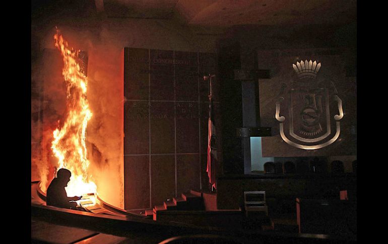 México | Ataques a edificios y vías de comunicación en Guerrero, Oaxaca y Michoacán Maestros y normalistas realizan protestas violentas en tres estados Maestros de la CETEG atacan edificios públicos en Chilpancingo; En Morelia y Oaxaca se registran agresiones a sedes de partidos y bloqueos a vías de comunicación Por: EL INFORMADOR 13 de noviembre de 2014 - 03:48 hs Las llamas alcanzaron al salón de sesiones del Congreso de Guerrero. EFE / J. De la Cruz CIUDAD DE MÉXICO (13/NOV/2014).- Las protestas para que reaparezcan con vida los 43 normalistas están intensificándose en distintas ciudades. Ayer en Chilpancingo unos 800 maestros de la Coordinadora Estatal de Trabajadores del Estado de Guerrero (CETEG) y estudiantes normalistas encendieron fuego al salón de sesiones del Congreso estatal, a las instalaciones de la Contraloría y a la Junta de Conciliación y Arbitraje. Los docentes también quemaron cinco automóviles que estaban estacionados en el recinto legislativo y la biblioteca “Sentimientos de la Nación”, ubicada en el mismo edificio. Aunque policías antimotines acudieron al sitio, se vieron superados en número y evitaron un enfrentamiento. Una vez perpetrado su plan de acción, los docentes regresaron a su plantón en la Plaza Cívica, en el centro de la capital. En Morelia también hubo disturbios. Si el martes los objetivos fueron las sedes del PAN, PRD y Nueva Alianza, ayer los estudiantes destruyeron parte de las oficinas administrativas del Partido Revolucionario Institucional ( PRI). Además, bloquearon el aeropuerto de la ciudad e invadieron la pista de aterrizaje. En Oaxaca, estudiantes realizaron bloqueos y destrozos en casetas de cobro y en oficinas del Gobierno. Temas Michoacán Estados Oaxaca Guerrero Manifestaciones en México Lee También Despliegan operativo tras bloqueos en Chiapas Este será el costo del Gas Bienestar en la semana del 13 al 18 de octubre Viral: vendedor de carnitas es detenido por matar a extranjero a tubazos en la CDMX ¿Cuánto cuestan y dónde comprar boletos para el México vs Ecuador? Recibe las últimas noticias en tu e-mail Todo lo que necesitas saber para comenzar tu día Registrarse implica aceptar los Términos y Condiciones