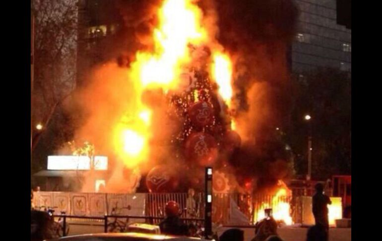 Las aprehensiones se registraron a la altura de Niza y Hamburgo, y al momento se está a la espera de la puesta a disposición de una agencia ministerial.El momento del incendio generó que varias personas se alertarán y otras más captaran con sus teléfonos móviles la forma en que el adorno navideño se consumió por completo.Manifestantes que protestan contra el alza a la tarifa del Metro participan en una marcha sobre la zona.