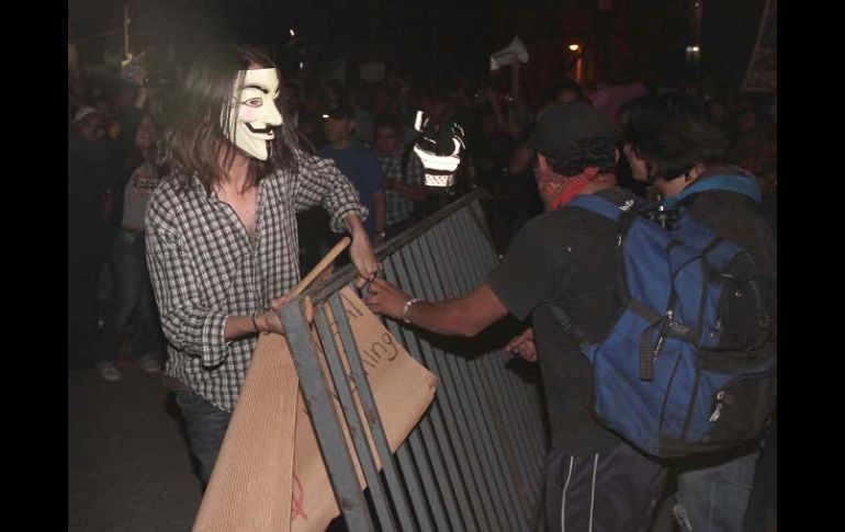 México | Elementos de la Secretaría de Seguridad Pública capitalina resguardan las instalaciones Manifestantes tiran vallas y lanzan piedras al TEPJF Los manifestantes pertenecen a las organizaciones #YoSoy132, Sindicato Mexicano de Electricistas, Movimiento de Regeneración Nacional, entre otras Por: SUN 30 de agosto de 2012 - 20:27 hs Integrantes del #YoSoy132 y otros grupos se manifiestan afuera del tribunal. NTX / CIUDAD DE MÉXICO (30/AGO/2012).- Alrededor de las 20:30 horas de este jueves, un centenar de manifestantes apostados en las afueras del Tribunal Electoral del Poder Judicial de la Federación (TEPJF) tiraron las vallas metálicas que resguardan la entrada principal del inmueble, lanzaron piedras y otros objetos hacia el interior del recinto y empezaron a agredir a elementos de seguridad pública. Aunque no han rebasado las rejas del Tribunal, unos 50 elementos de la Secretaría de Seguridad Pública capitalina, dotados con escudos, resguardan las instalaciones pese a las agresiones, consistentes en empujones y lluvia de objetos como botellas de plástico y alimentos. Los manifestantes, pertenecientes a las organizaciones #YoSoy132, Sindicato Mexicano de Electricistas (SME), Movimiento de Regeneración Nacional (Morena) y otras también han tenido algún tipo de roce con los elementos policiacos que mantienen una valla frente al edificio. Solamente se reportan gritos e insultos a trabajadores del Tribunal y hacia los medios de comunicación presentes, aunque han reportado jaloneos con personal de seguridad pública capitalina. Los ánimos se caldearon al conocer que los magistrados electorales han desestimado hasta ahora todos los alegatos esgrimidos por el Movimiento Progresista para anular la elección. Dentro del inmueble también hay elementos de la Policía Federal para garantizar la seguridad de quienes laboran en el órgano jurisdiccional. Con información de EL UNIVERSAL y NTX Temas TEPJF Elecciones México 2012 #YoSoy132 Recibe las últimas noticias en tu e-mail Todo lo que necesitas saber para comenzar tu día Registrarse implica aceptar los Términos y Condiciones