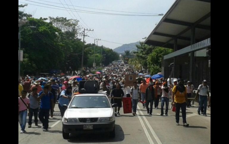 México | Rompen vidrios de automóviles; además de hacer pintas contra el gobierno Marcha por Ayotzinapa llega a Palacio municipal de Acapulco Los turistas se asoman por los balcones de los hoteles para observar la manifestación Por: SUN 31 de octubre de 2014 - 13:24 hs ACAPULCO, GUERRERO (31/OCT/2014).- La vanguardia de la manifestación de estudiantes y maestros que exigen la aparición con vida de los 43 estudiantes normalistas de Ayotzinapa, llegó al Palacio municipal de este puerto poco después de las 13:00 horas, donde se prevé que realicen un mitin. La marcha transcurría sin incidentes; sin embargo, a 10 metros del Palacio municipal algunos maestros con el rostro cubierto rompieron algunos vidrios de cinco camionetas y con un palo con clavos poncharon varias llantas; además se hicieron pintas en contra de gobierno. La columna de manifestantes avanzó a lo largo de la Costera Miguel Alemán ante algunas expresiones de apoyo de locatarios del mercado de artesanías. Los turistas se asomaban por los balcones de los hoteles para observar la manifestación y tomar fotografías con sus teléfonos celulares. Temas Estados Guerrero Acapulco Manifestaciones en México Desapariciones y denuncias Lee También Dólar amanece encarecido este 10 de octubre Pronóstico de lluvia hoy, 10 de octubre, a esta HORA en CDMX "La Mañanera" de Sheinbaum de hoy viernes 10 de octubre de 2025 La distopía de Clara Brugada Recibe las últimas noticias en tu e-mail Todo lo que necesitas saber para comenzar tu día Registrarse implica aceptar los Términos y Condiciones
