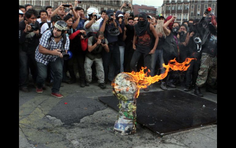 México | El Comité Organizador se deslinda de destrozos de anarquistas durante marcha Marcha por 'Halconazo' no registró detenidos: SSPDF El Comité Organizador se deslinda de destrozos de anarquistas durante marcha Por: SUN 10 de junio de 2014 - 20:51 hs Los llamados 'anarcos' hicieron la quema simbólica de una Copa del Mundo. SUN / CIUDAD DE MÉXICO (10/JUN/2014).- La Secretaría de Seguridad Pública del Distrito Federal ( SSPDF) informó que la marcha para conmemorar el 43 aniversario del "Halconazo" ocurrido el 10 de junio de 1971, concluyó sin detenidos, a pesar de las agresiones que sufrieron algunos periodistas y de los daños causados a inmuebles. Ante los reclamos de la prensa por las agresiones hechas a dos compañeros gráficos sobre la avenida Juárez, algunos integrantes del movimiento autodenominado Anarquista justificaron su actitud asegurando que ellos obstruían su espacio para hacer pintas y dañar los inmuebles. "El problema es que nosotros estamos pintando, ponemos mensajes con pintura en las paredes, pero muchas personas de la prensa ni siquiera dan espacio para que eso pueda pasar. Si a ti te están grabando o tomando fotos, obviamente te vas a enojar, no les estamos diciendo que no", expresó un joven, quien cubrió su rostro con una playera roja, dejando sólo ver sus ojos. Sobre los daños causados a una sucursal bancaria localizada también en Juárez, el anarquista comentó que "los bancos son instancias gubernamentales que no sirven más que para alimentar a un capital y arrojar una piedra a un banco considero que es rasguñar al capital, eso no le va a perjudicar en lo más mínimo. Romper un vidrio causaría daños que tarde o temprano van a tener que reparar. Ellos pierden dinero cuando marchamos, paramos el tráfico y rompemos un vidrio". Luego de marchar desde San Cosme hasta la Plaza de la Constitución, integrantes del Sindicato Mexicano de Electricistas (SME), la Coordinadora Nacional de Trabajadores de la Educación ( CNTE), estudiantes de diversas instituciones, vecinos de San Bartolo Ameyalco y San Salvador Atenco, así como anarquistas, realizaron un mitin en la plancha del Zócalo. Con pintas en diversos inmuebles, vidrios rotos de bancos y tiendas, así como daños en paradas del transporte público y reporteros golpeados, concluyó la conmemoración del 43 aniversario del "Halconazo". Concluye Mitin El mitin en el marco de la conmemoración del 43 aniversario del "Halconazo", en el Zócalo de la Ciudad de México concluyó luego de que el Comité Organizador se deslindara del vandalismo y agresiones hacia periodistas, por parte de jóvenes encapuchados, autodenominados anarquistas. En tanto, los llamados "anarcos" hicieron la quema simbólica de una Copa del Mundo, la cual fue hecha de papel periódico y cartón a un costado del asta de la bandera monumental del Zócalo. Temas SSPDF Estados Ciudad de México Manifestaciones en la Cd. de México Agresiones a periodistas Recibe las últimas noticias en tu e-mail Todo lo que necesitas saber para comenzar tu día Registrarse implica aceptar los Términos y Condiciones