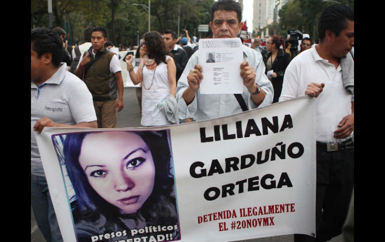 México | Los manifestantes exigen la libertad de los 11 consignados el 20 de noviembre Marcha por detenidos llega al Zócalo del DF Los manifestantes exigen la libertad de los 11 consignados el 20 de noviembre Por: SUN 25 de noviembre de 2014 - 19:24 hs Los detenidos en la pasada jornada por los normalistas están consignados en distintos penales. SUN / CIUDAD DE MÉXICO (25/NOV/2014).- Cerca de 500 manifestantes que salieron del Ángel de la Independencia arribaron al Zócalo capitalino para exigir la aparición con vida de los 43 normalistas desaparecidos de Ayotzinapa y la libertad de los 11 consignados a penales federales detenidos el 20 de noviembre en el centro histórico de esta ciudad. Con consignas "¿Qué quieren los presos? ¡Libertad!", "Libres se los llevaron, libres los queremos", el contingente caminó sobre Paseo de la Reforma, avenida Juárez y 5 de Mayo para llegar a la Plaza de la Constitución. Los manifestantes sumaron una consigna en el marco del Día Internacional de Lucha contra la Violencia hacia las Mujeres, la cual indica "Alto a la violencia que viven a diario las mujeres en este país". En entrevista, Norma Andrade, presidenta de la Fundación Nuestras Hijas de Regreso a Casa, expresó su apoyo a los padres de los desaparecidos y exhortó a la ciudadanía a que se sumaran en esta lucha. También José Luis Rubio, padre de Yakiri Rubio Aupart quien fuera detenida y acusada de asesinar a su presunto violador, invitó a los padres de familia a que participen en la exigencia de la liberación de estos 11 jóvenes, "ya que si eso les pasó a ellos, no dudemos que nos pueda pasar a cualquiera". Se espera que los familiares de estos detenidos se reúnan con algunos legisladores para exponer sus demandas. Temas Estados Distrito Federal Manifestaciones en la Cd. de México Detenidos en México Recibe las últimas noticias en tu e-mail Todo lo que necesitas saber para comenzar tu día Registrarse implica aceptar los Términos y Condiciones