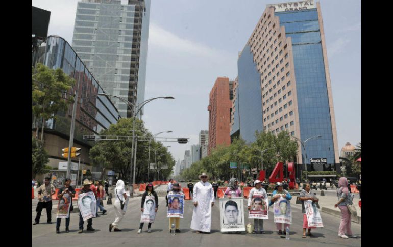 CIUDAD DE MÉXICO (26/ABR/2017).- Un contingente de alrededor de 300 personas protesta este miércoles frente al “Antimonumento +43” sobre Paseo de la Reforma y Bucareli, para después continuar su marcha hacia el Hemiciclo a Juárez, en conmemoración de los 31 meses de la desaparición de los 43 estudiantes normalistas de Ayotzinapa, por hechos ocurridos en Iguala, Guerrero.Padres de las víctimas encabezan la marcha que cierra una jornada de seis días de movilizaciones.Los manifestantes salieron del plantón indefinido que mantienen afuera de las instalaciones de la Procuraduría General de la República (PGR) en Paseo de la Reforma 211.Se prevé que se realice un mitin al llegar el Hemiciclo para señalar una postura referente al avance de las investigaciones de los hechos ocurridos el 26 de septiembre de 2014.Contingentes civiles se unieron a los manifestantes conforme avanzaron el recorrido que complicó la vialidad sobre Paseo de la Reforma y Bucareli, así como de Eje 1 Norte a Juárez.