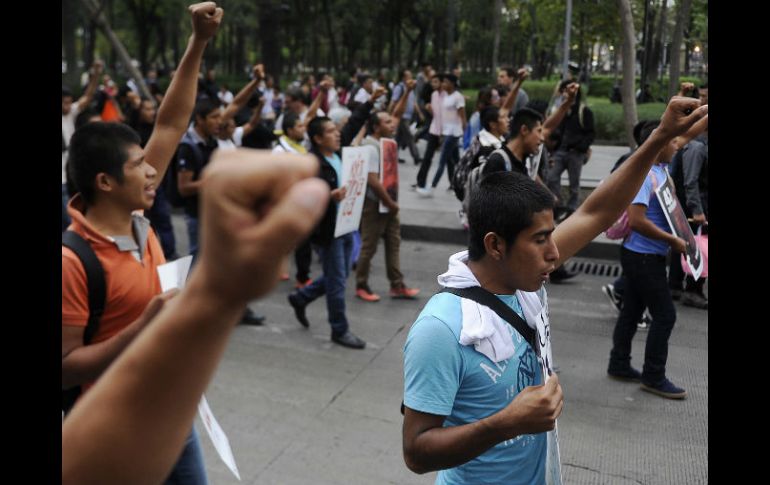 CIUDAD DE MÉXICO (26/SEP/216).- Luego de un recorrido de casi dos horas el contingente que salió del Ángel de la Independencia llegó a la plancha del Zócalo capitalino.La marcha, encabezada por padres de los 43 estudiantes desaparecidos en Iguala, realizó su recorrido sobre todos los carriles centrales de Paseo de la Reforma.En la esquina de Reforma y Bucareli tres madres de estudiantes desaparecidos realizaron el pase de lista al pie del antimonumento con el número 43.Las mujeres dedicaron un mensaje a sus hijos."Los amamos, los queremos y los seguiremos buscando", dijo una de ellas.El avance continuó sobre avenida Juárez y después los manifestantes tomaron Eje Central para ingresar sobre la calle 5 de Mayo."Ayotzinapa vive, la lucha sigue", "No has muerto camarada, tu muerte será vengada", gritaban los manifestantes.A la marcha se sumaron estudiantes de la UNAM, el IPN y la UAM.Colectivos y organizaciones civiles acompañaron a los padres en la marcha, entre ellos destacó el Frente 19 de junio Nochixtlán y un contingente de integrantes de la CNTE.Cifras extraoficiales señalan que al menos 10 mil personas marcharon.