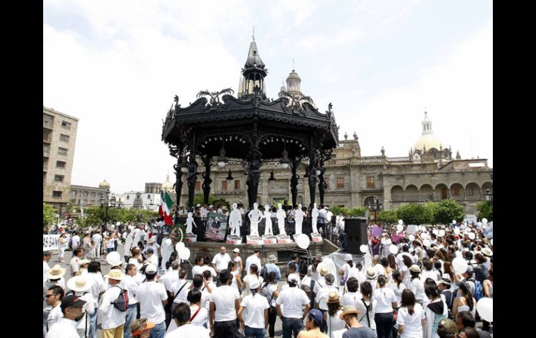 México | Javier Sicilia exige la dimisión de Genaro García Luna, titular de Seguridad Pública Marcha unifica el clamor por la paz El movimiento que encabeza el poeta Javier Sicilia exige frenar ola de violencia y la dimisión del titular de Seguridad Pública Por: EL INFORMADOR 9 de mayo de 2011 - 03:30 hs Vestidos de blanco, cerca de dos mil tapatíos se pronuncian en la Plaza de Armas en favor de un freno a la violencia. E. PACHECO / -Llaman a no bajar la guardia en la exigencia de seguridad-Cerca de dos mil marchan en Guadalajara por la pazCIUDAD DE MÉXICO (09/MAY/2011).- La sed de paz y justicia unificó las voces de miles de ciudadanos mexicanos en distintos puntos del país. El hartazgo por la ineficiencia del Gobierno federal para contrarrestar la ola de violencia no dejó más opción que manifestarse para exigir, de nuevo, un “Ya basta”. El eco nacional de las demandas ciudadanas fue el Zócalo de la Ciudad de México, donde la Marcha por la Paz con Dignidad y Justicia, que impulsó el poeta Javier Sicilia tras la muerte el 27 de marzo de su hijo José Francisco y otros seis jóvenes de Morelos, reunió a alrededor de 100 mil personas —según estiman los organizadores— ultrajadas por la inseguridad que, como nunca antes, golpea al país. Ayer, en la plancha capitalina confluyeron ciudadanos que exigieron les regresen a sus familiares desaparecidos, clamaron justicia para los inocentes asesinados en fuegos cruzados, para los activistas silenciados, para las víctimas de la delincuencia organizada. En Guadalajara, Monterrey, Acapulco, Culiacán, Oaxaca y 30 ciudades más de México y del mundo, el grito fue el mismo: “paz” y “justicia”. En el mitin del Zócalo, Javier Sicilia pidió la renuncia de Genaro García Luna, titular de la Secretaría de Seguridad Pública federal. El Movimiento por la Paz, que aglutina a unas 100 organizaciones, expresó seis exigencias que en caso de ser rechazadas o incumplidas por el Gobierno, llevarán a “acciones de resistencia civil y pacífica”. La Secretaría de Gobernación expresó anoche su respeto a la manifestación ciudadana. Temas Estados Distrito Federal Manifestaciones en México Lee También CURP biométrica : ¿Dónde sacar cita para el trámite en CDMX? Detienen a Lex Ashton 'N' por homicidio y tentativa de homicidio Fallece influencer Fede Dorcaz en presunto intento de robo en la CDMX ¿Bad Bunny fuera del Super Bowl? Este sería el show alternativo Recibe las últimas noticias en tu e-mail Todo lo que necesitas saber para comenzar tu día Registrarse implica aceptar los Términos y Condiciones