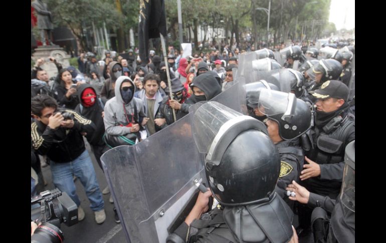 México | Hasta el momento no se registra ningún enfrentamiento Marchan al Zócalo por detenido del 2 de octubre Hasta el momento no se registra ningún enfrentamiento Por: SUN 8 de enero de 2014 - 17:31 hs Más de 200 policías de la SSPDF cercan a los manifestantes antes de que arriben a la Plaza de la Constitución. SUN / CIUDAD DE MÉXICO (08/ENE/2014).- Al menos treinta personas se encuentran en las inmediaciones del Ángel de la Independencia para exigir la liberación de Mario González, quien fue detenido el pasado 2 de octubre por presuntos ataques a la paz pública, luego de desmanes en el Centro Histórico. Los manifestantes, alguno de ellos encapuchados, se encuentran sobre la banqueta sin bloquear la circulación vial del Paseo de la Reforma. Pretenden llegar al Zócalo capitalino a pesar del resguardo que ahí mantienen elementos de la policía capitalina. Sobre la lateral de reforma se encuentran unos 100 uniformados del agrupamiento Fuerza de Tarea de la SSPDF quienes resguardarán la caminata hacia el centro de la ciudad. Por su parte, la Secretaría de Seguridad Pública del Distrito Federal ( SSPDF) asegura que son alrededor de 30 personas las que se concentran en el Ángel. Detalló que el grupo de manifestantes está integrado por familiares y amigos de Mario González, y aclaró que en el contingente hay dos o tres encapuchados, pero no se ha confirmado que sean integrantes del denominado grupo de anarquistas. La SSPDF, a través de su cuenta de Twitter @OrientadorVial, pide a los capitalinos tomar precauciones. "Tome precauciones, se prevé #marcha en Paseo de la Reforma del Ángel de la Independencia al Zócalo", escribió. Policías de la SSPDF cercan a manifestantes Más de 200 policías de la SSPDF cercaron en la avenida Juárez, en la zona centro de la ciudad de México, a los jóvenes autodenominados anarquistas que la tarde de este miércoles pretendían arribar al Zócalo capitalino. Hasta la tarde de este miércoles no se había registrado ningún enfrentamiento y la circulación de la avenida Balderas avanza con normalidad, así como el paso de los autobuses de la Línea 3 del Metrobús. Temas Estados Ciudad de México Manifestaciones en la Cd. de México Detenidos en México Lee También Protesta de trabajadores del SAT podría traer estas consecuencias para los contribuyentes Astros de Jalisco mantiene su constancia, aunque el título del la LNBP sigue pendiente Vive Latino 2026: Artistas, precios oficiales y fechas de preventa ¿Dónde ver EN VIVO el partido amistoso México vs Ecuador? Recibe las últimas noticias en tu e-mail Todo lo que necesitas saber para comenzar tu día Registrarse implica aceptar los Términos y Condiciones