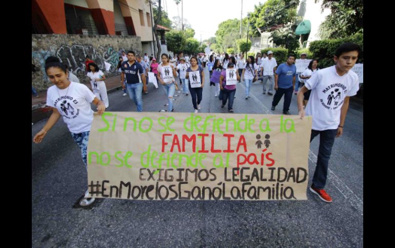 México | Los protestantes anunciaron recursos legales para revertir la declaratoria a la reforma Marchan contra matrimonios igualitarios en Morelos Los protestantes anunciaron recursos legales para revertir la declaratoria a la reforma Por: SUN 2 de julio de 2016 - 16:51 hs Decenas de grupos religiosos afines al PAN y al PES, marcharon este sábado. SUN / T. Rivera CUERNAVACA, MORELOS (02/JUL/2016).- Integrantes del Movimiento Morelense por la Familia marcharon contra la declaratoria legislativa de los matrimonios igualitarios en el estado. Los militantes del Partido Acción Nacional ( PAN), grupos conservadores y feligreses de la iglesia católica, fueron encabezados por el obispo de Cuernavaca, Ramón Castro Castro, quien desde ayer acusó que el gobernador Graco Ramírez compró las conciencias de los diputados locales para lograr la aprobación de la reforma constitucional y su posterior declaratoria. El obispo guardó silencio este día luego de emitir su circular de condena a los matrimonios igualitarios por lo que se tomó tiempo para posar en selfies con grupos católicos de distintos municipios, a quienes convocó mediante sus pastorales. Los organizadores de la marcha anunciaron recursos legales para revertir la declaratoria a la reforma legal por parte del Poder Legislativo, que permite el matrimonio entre personas del mismo sexo. Este sábado decenas de grupos religiosos afines al Partido Acción Nacional (PAN) y al Partido Encuentro Social (PES), de filiación cristiana, marcharon del sur de la ciudad al Centro Histórico de la capital. En el zócalo el Movimiento Morelense por la Familia, en voz de Adriana Manzón, anunció una resistencia pacifica en los Ayuntamientos de la entidad para revertir la reforma que, a su juicio, es violatoria porque de los 33 cabildos, 18 rechazaron la reforma, a pesar de ello acusan que el Congreso Local emitió la declaratoria. Adriana Manzón informó que un grupo de juristas presentará un recursos legal contra la reforma pues se violó el proceso parlamentario. También, dijo, interpondrán una solicitud de juicio de procedencia contra el presidente de la Mesa Directiva del Congreso Local, el priistas Francisco Moreno Merino, diputado que dio por valida la reforma. Anunció asimismo caminatas en los 18 municipios donde los cabildos rechazaron los matrimonios igualitarios y la formación de brigadas para informar a los ciudadanos delas violaciones de los diputados que intentan imponer el matrimonio entre personas del mismo sexo, acusaron. La vocera dijo que la resistencia considera la Creación de Uniones Populares de Padres de Familia, pero sin la intención de hacer "grilla”. La resistencia de este movimiento considera interponer una queja por discriminación contra los legisladores ante la Consejo Nacional para Prevenir la Discriminación (Conapred). En la marcha participaron diputados locales y federales del PAN, además de la senadora del Partido Revolucionario Institucional (PRI), Lizbeth Lecona y el obispo de la diócesis de Cuernavaca Ramón Castro. Ayer viernes el obispo llamó a los católicos a acudir a la marcha como ciudadanos para exigir respeto a la decisión de la mayoría de los municipios que rechazaron los matrimonios igualitarios. Temas Estados Morelos Matrimonio homosexual Manifestaciones en México Lee También Protesta de trabajadores del SAT podría traer estas consecuencias para los contribuyentes Astros de Jalisco mantiene su constancia, aunque el título del la LNBP sigue pendiente Vive Latino 2026: Artistas, precios oficiales y fechas de preventa ¿Dónde ver EN VIVO el partido amistoso México vs Ecuador? Recibe las últimas noticias en tu e-mail Todo lo que necesitas saber para comenzar tu día Registrarse implica aceptar los Términos y Condiciones