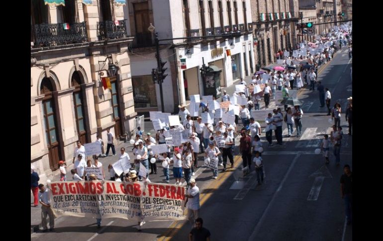 México | Fueron secuestradas 20 personas hace un mes Marchan de nuevo familiares de michoacanos desaparecidos Más de mil personas marcharon vestidos de blanco por la desaparición en Acapulco de familiares y amigos Por: SUN 31 de octubre de 2010 - 16:12 hs Familiares, amigos, vecinos y compañeros de trabajo de las personas desaparecidas marcharon por segunda ocasión. EL UNIVERSAL / CIUDAD DE MÉXICO (31/OCT/2010).- A un mes de su desaparición, familiares, amigos, vecinos, compañeros de trabajo, pero sobre todo las esposas, madres e hijos de los michoacanos desaparecidos en Acapulco marcharon por segunda ocasión en 15 días. "A las personas que los tienen, les pedimos tengan piedad de ellos, de nosotros. ¡Por favor devuélvanoslos! Entréguenoslos con bien. La vida sin ellos no es vida", es la petición convertida en súplica de Katy Rodríguez Ortiz, vocera de los familiares del grupo de 20 michoacanos secuestrados. Poco más de mil personas marcharon vestidos de blanco y realizaron el mismo recorrido que la vez anterior. Portando pancartas, globos blancos y cartulinas que rezaban por la aparición del padre, o por el reclamo de celeridad a las autoridades, partieron del monumento a Morelos y se enfilaron por la avenida Madero hasta llegar a Catedral, para escuchar misa dedicada a sus seres queridos. Esta vez se pronunciaron que las instancias federales tomen el caso, pues se quejan de que la Procuraduría de Justicia de Guerrero no les ha dado avance alguno. "Sólo se limitan a decirnos que están trabajando, que están investigando, pero el que te digan eso no es respuesta. ¡Que nos digan que ya hay una pista!", se quejó Ortiz Rodríguez, quien es sobrina de siete. "No nos han dado ni una pista ni una línea de investigación. ¿Cómo te puedes llevar a 20 personas en la zona dorada de Acapulco, donde hay cámaras? ¿porqué no se sabe cómo fue qué se los llevaron?", cuestionó. A nombre de las familias afectadas, pidió que la Procuraduría General de la República ( PGR) y, en particular, a la Subprocuraduría de Investigación Especializada en Delincuencia Organizada ( SIEDO), tomé el caso y asuma las investigaciones. "Las autoridades federales coadyuvan, pero creemos que tienen mejores recurso técnicos y tecnológicos, por eso pedimos que la SIEDO o la PGR atraigan las investigaciones, por que tienen mucho más capacidad", afirmó Katy Rodríguez. Lamentó que "de las autoridades de Guerrero no vemos algún avance, sólo dicen que están investigando", al tiempo que se pronunció por que las autoridades federales sean las que aclaren la situación difundida en un video de youtube donde un presunto policía municipal de Acapulco acusa a compañeros suyos de ser partícipes en el secuestro del grupo. Temas Michoacán Estados Desapariciones y denuncias Lee También Pueblos Mágicos con tradiciones del Día de Muertos más cerca de Jalisco ¿Recibiste correo de rechazo de FIFA? Aquí te decimos cuándo es la siguiente venta Trump se reunirá con Putin para negociar fin de la guerra en Ucrania Trump construirá un arco del triunfo en Washington Recibe las últimas noticias en tu e-mail Todo lo que necesitas saber para comenzar tu día Registrarse implica aceptar los Términos y Condiciones