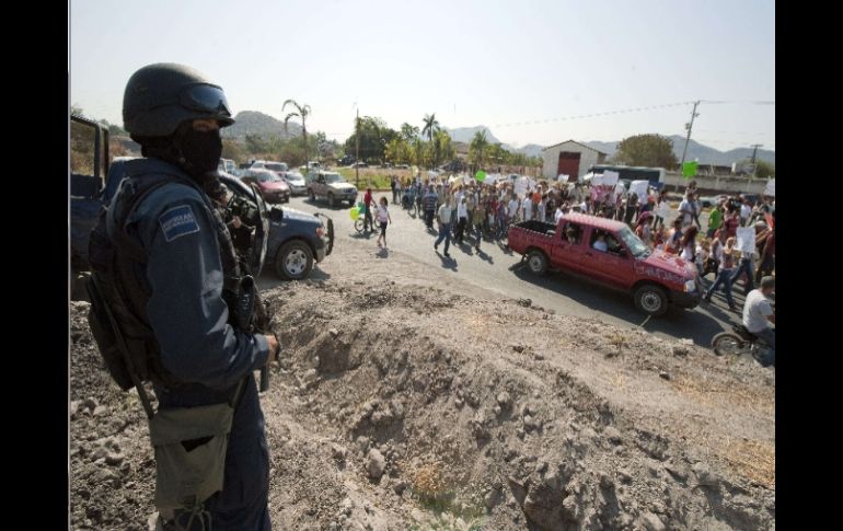 México | Un centenar de personas salieron a las calles para manifestar su inconformidad Marchan en Michoacán para exigir salida de Policía Federal Un centenar de personas salieron a las calles para manifestar su inconformidad Por: NTX 13 de diciembre de 2010 - 13:03 hs Habitantes de Apatzingán ya habían demostrado su inconformidad el domingo. AFP / MORELIA, MICHOACÁN (13/DIC/2010).- Al menos 100 personas marcharon por las calles de Morelia para pedir nuevamente la salida de las fuerzas federales, particularmente de la Policía Federal. Con las consignas: "Fuera la PFP", y "Felipe Calderón llévate a tus policías de aquí", los manifestantes, sobre todo jóvenes y adultos tomaron la vialidad principal de Morelia, avenida Madero, y cerraron parcialmente la circulación de oriente a poniente de la ciudad. Partieron de la fuente de Las Charascas hacia el Palacio de Gobierno, y llegaron a la Catedral, en donde en la reja del atrio depositaron las cartulinas fosforescentes que llevaban consigo. Es la segunda marcha similar que se realiza en Morelia en las últimas 24 horas, pues ayer domingo transportistas y supuestos comerciantes de Ciudad Hidalgo, se trasladaron a la capital del estado, y marcharon con las mismas consignas. “La única razón y lo que pedimos es que el Gobierno federal retire sus fuerzas, porque sólo nos perjudica su guerra contra esos señores. Sólo nos ocasiona que nos cierren negocios, nos cierren trabajos, nos cierren carreteras y no podamos vivir en paz”, dijo Javier González, quien aseguró ser representante de la Organización de Comerciantes de Ciudad Hidalgo. Temas Michoacán Estados Manifestaciones en México Policía Federal Recibe las últimas noticias en tu e-mail Todo lo que necesitas saber para comenzar tu día Registrarse implica aceptar los Términos y Condiciones