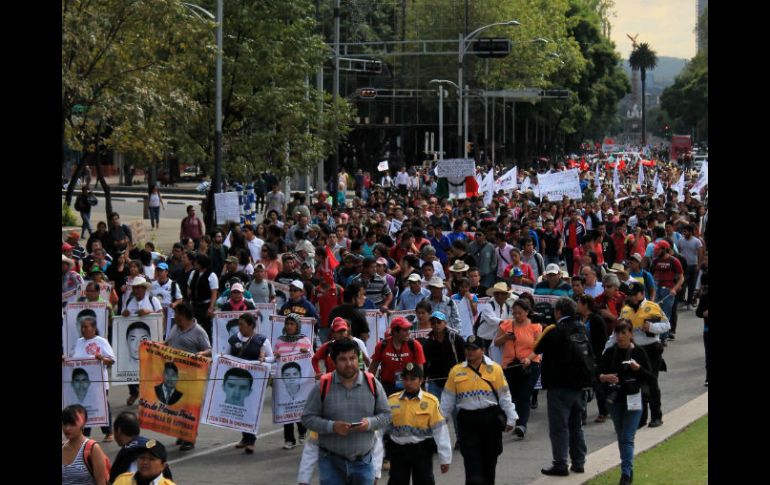 México | A 11 meses de la desaparición de normalistas, manifestantes arriban al Zócalo Marchan en el DF por caso Ayotzinapa A 11 meses de la desaparición de normalistas, manifestantes arriban al Zócalo para realizar un mitin Por: SUN 26 de agosto de 2015 - 18:10 hs CIUDAD DE MÉXICO (26/AGO/2015).- Una marcha para exigir la aparición de los jóvenes de la Escuela Normal Rural de Ayotzinapa, Guerrero, arribó al Zócalo capitalino, donde se emitiría un discurso al cumplirse los 11 meses de su desaparición. Antes de arribar al primer cuadro, el contingente hizo una parada en el monumento que fue colocado en el cruce de avenida Juárez y Reforma, para dar un pase de lista y recordar a cada uno de los 43 jóvenes que fueron vistos por última vez el 26 de septiembre de 2014. A su paso, el contingente exigió la aparición de los estudiantes, se haga justicia y se dé castigo para las personas que participaron en su desaparición. Temas Estados Ciudad de México Manifestaciones en la Cd. de México Caso Ayotzinapa Lee También Lista actualizada de selecciones que ya clasificaron al Mundial 2026 La edad de riesgo de padecer un trastorno mental, según expertos Esta es la ubicación de las presas que abastecen al Sistema Cutzamala Reportan dos muertos por lluvias en México Recibe las últimas noticias en tu e-mail Todo lo que necesitas saber para comenzar tu día Registrarse implica aceptar los Términos y Condiciones