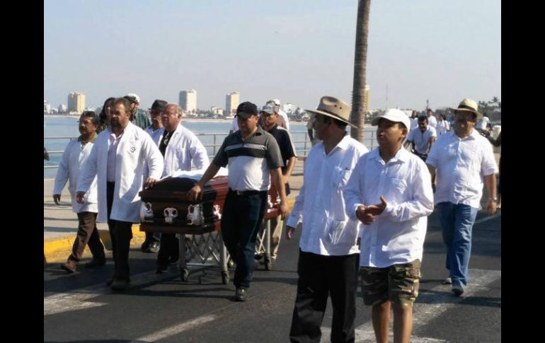 CULIACÁN, SINALOA (27/MAY/2017).- Cientos de médicos, con sus batas blancas y estetoscopios, marcharon en las ciudades de Culiacán y Mazatlán para exigir un freno a la violencia y el esclarecimiento del asesinato del director del Instituto de Seguridad y Servicios Sociales de los Trabajadores del Estado (ISSSTE) de Mazatlán, Miguel Ángel Camacho Zamudio.Alfredo Román Messina, secretario de Salud del Estado, dijo que en el sector salud trabajan cerca de 10 mil empleados, por lo que "es imposible brindar seguridad a las clínicas, hospitales e incluso a los propios directores".En la capital del estado, los miembros del Colegio Médico de Sinaloa se reunieron, desde temprana hora, en las escalinatas del Templo de la Lomita, icono de la ciudad, de donde iniciaron la marcha silenciosa por la avenida Álvaro Obregón, principal vía de Culiacán.Mientras que en el malecón del puerto de Mazatlán, personal de los diversos hospitales marchó con pancartas alusivas al asesinato del doctor Camacho Zamudio, especialista en epidemiología, en exigencia que las autoridades pongan un alto a la ola de violencia.El miércoles pasado, el doctor Camacho Zamudio fue asesinado a tiros sobre la avenida Mazatlán en el Fraccionamiento Foviiste, Playa Azul, cuando se dirigía a sus oficinas en la Clínica Hospital del ISSSTE.La tarde del viernes fue sepultado, con música banda, en la comunidad de Malpica, del municipio de Concordia, su tierra natal.