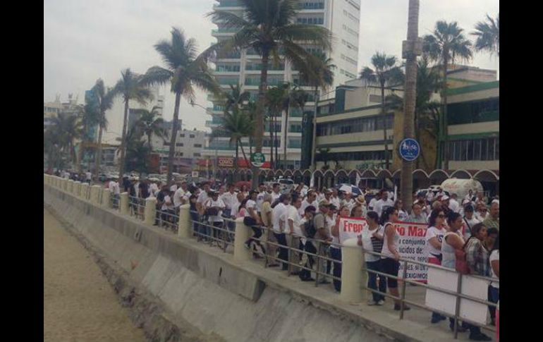 CULIACÁN, MAZATLÁN (20/MAY/2017).- Frente al monumento de la Familia, en la ciudad de Mazatlán, un largo contingente de hombres, mujeres y adolescentes, vestidos de blanco, con mantas exigieron justicia por los asesinatos de juristas, maestros y periodistas.Con una manta, con letras en color rojo y negro, con el texto: “Marcha ciudadana por la Paz y la Seguridad”, los participantes, de todos los estratos sociales y actividades, desfilaron por una de las principales avenidas.En su marcha los manifestantes, lanzaron voces de reclamos y de “justicia, justicia”, por los recientes asesinatos, entre ellos de los maestros de la sierra de Concordia, Feliciano “N”, Ramón “N”, de la escuela primaria “Agustina Ramírez”, del Cuantanal y del profesor de la Telesecundaria del mismo poblado 328, Luis Alberto “N”.Uno de los organizadores de la marcha, Arturo Lizárraga, del Frente Amplio de Mazatlán recordó que hace unos días, en el puerto fue privado de la vida el jurista, Miguel Ángel Sánchez Morán.Citó el caso más reciente, del cofundador del semanario Ríodoce, Javier Valdez Cárdenas, asesinado el lunes pasado en Culiacán.