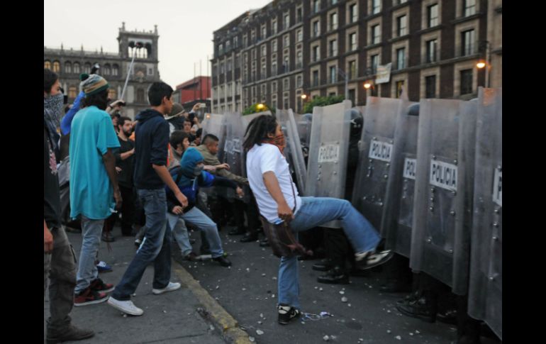 México | Mientras que el GDF reporta 22 detenidos, asociaciones señalan que son 27 Marchan por liberación de detenidos en el Zócalo Mientras que el GDF reporta 22 detenidos, asociaciones civiles señalan que en realidad son 27 Por: SUN 11 de junio de 2013 - 16:46 hs La PGJDF busca acusar a los detenidos por disturbios y agresiones contra policías granaderos. ARCHIVO / CIUDAD DE MÉXICO (11/JUN/2013).- Familiares, amigos y compañeros de los detenidos por los disturbios registrados ayer lunes, durante la marcha de conmemoración del 10 de junio, realizan una protesta de la agencia 50 del Ministerio Público al Zócalo para pedir al Gobierno del Distrito Federal su liberación. Por estos hechos, la Comisión de Derechos Humanos del Distrito Federal (CDHDF) cuenta con cuatro quejas que fueron canalizadas a la Primera Visitaduría, a cargo de Mario Patrón. Y aunque la PGJDF, así como la CDHDF, indican que son 22 los detenidos, entre ellos un menor de edad, la Liga 1 de diciembre, Asociación Nacional de Abogados Democráticos, así como el Comité Cerezo México, difundieron una lista de los detenidos en donde cifran a 27 personas. Temas Estados Ciudad de México Manifestaciones en la Cd. de México Detenidos en México Recibe las últimas noticias en tu e-mail Todo lo que necesitas saber para comenzar tu día Registrarse implica aceptar los Términos y Condiciones