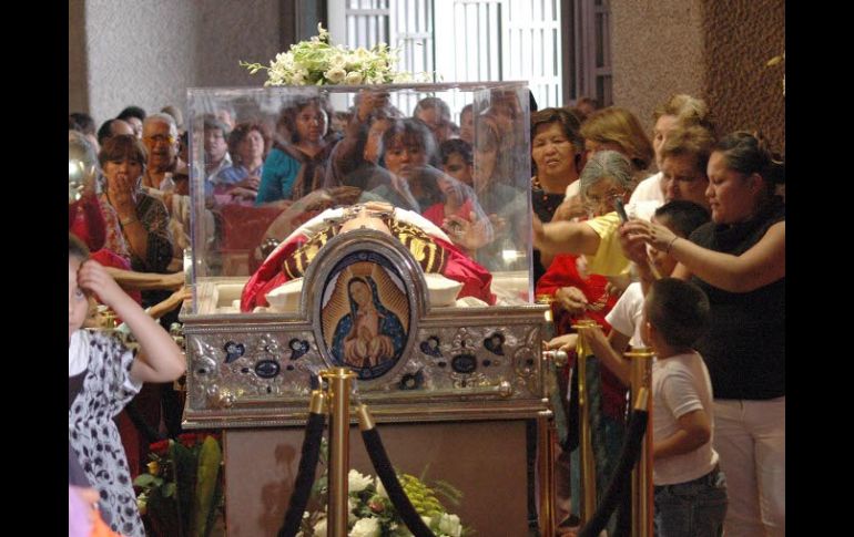 México | Las filas se formaron por cuatro días en la Basílica de Guadalupe Más de 200 mil fieles visitan reliquias de Juan Pablo II Partirán hacia la Catedral de la Diócesis de Toluca, segundo punto de su peregrinación por 91 diócesis del país Por: NTX 28 de agosto de 2011 - 21:26 hs Ante la urna que contiene las reliquias han desfilado hasta 70 feligreses por minuto. NTX / CIUDAD DE MÉXICO (28/AGO/2011).- Este domingo concluye la estancia de las reliquias del beato Juan Pablo II en la Basílica de Guadalupe, santuario donde el pasado 25 de agosto iniciaron su peregrinación nacional que realizarán por cuatro meses. Según Comunicación Social de la Basílica de Guadalupe, los fieles que acuden a visitar las reliquias han formado hasta 55 filas en el atrio, y ante la urna que las contiene han desfilado hasta 70 feligreses por minuto, lo que hace un aproximado de más de 200 mil fieles hasta esta tarde. Con lo anterior, el "Papa mexicano" volvió a movilizar a cientos de miles de feligreses, familias enteras, jóvenes y adultos. A lo largo de estos cuatro días, durante todas las misas que se ofician ordinariamente en la Basílica de Guadalupe desde las 06:00 hasta las 20:00 horas, los fieles han recordado el legado del Papa peregrino de la paz y han orado por la paz del mundo y en especial de México, y por los fallecidos en Monterrey el jueves pasado. En el atrio, mientras los fieles esperan pasar ante la urna, han tenido la oportunidad de escuchar la catequesis sobre la vida de Juan Pablo II y algunos incluso hacen la oración del Rosario. Tras ser despedidas esta noche, las reliquias partirán hacia la Catedral de la Diócesis de Toluca, segundo punto de su peregrinación por 91 diócesis del país. Las reliquias son dos: una de primer grado que consiste en una cápsula con sangre de Juan Pablo II colocada en un relicario en forma de cruz y pegada al pecho de una figura de cera del beato a tamaño natural, y otra de segundo grado que consta de un fajín con el escudo papal que fue de su propiedad. La figura de cera fue elaborada por artesanos de la ciudad de Guanajuato, la cual porta las vestimentas que fueron confeccionadas por el sastre del Papa, y una estola hecha por religiosas de Guadalajara. La urna es de alpaca repujada con incrustaciones de Talavera y agarraderas en los cuatro lados. Sus dimensiones son de dos metros de largo por 1.10 de ancho y 1.60 de alto. Su peso aproximado es de 250 kilogramos, incluyendo la base rodante para su instalación, y está protegida con una mica especial y sellada para su propia seguridad. Después de visitar el Estado de México, las reliquias retornarán el 5 de septiembre a la capital del país para estar hasta el día 8 del mismo mes en la Catedral metropolitana. Temas Estados Iglesia Católica Juan Pablo II Basílica de Guadalupe Recibe las últimas noticias en tu e-mail Todo lo que necesitas saber para comenzar tu día Registrarse implica aceptar los Términos y Condiciones