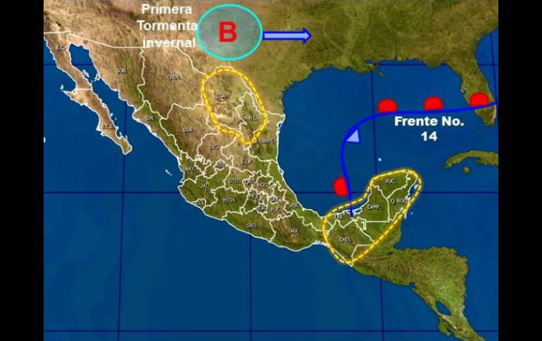 México | El frente se extenderá a partir de mañana sobre el Golfo de México Masa de aire reforzará efectos del frente frío 14 La Conagua reporta que el frente se extenderá a partir de mañana sobre el oriente del Golfo de México Por: NTX 25 de noviembre de 2013 - 17:10 hs Durante las próximas 24 horas continuarán los efectos de la primera tormenta invernal. TOMADA DE @conagua_clima / CIUDAD DE MÉXICO (25/NOV/2013).- Una nueva masa de aire ártico reforzará el frente frío 14 a partir de este martes, ocasionando una onda gélida en el norte, noreste, oriente y centro del país, informó la Comisión Nacional del Agua ( Conagua). En su cuenta de Twitter, el organismo informó además, que mañana martes 26 de noviembre, el frente frío referido se extenderá sobre el oriente del Golfo de México y se reactivará por una nueva masa de aire polar continental; asimismo, se pronostica "norte" de fuerte a intenso rumbo al Istmo y Golfo de Tehuantepec. También para el martes 26 de noviembre, la Conagua pronosticó un "norte" con velocidades de 40 a 60 kilómetros por hora, rachas de hasta 80 kilómetros por hora sobre el litoral de los golfos de México y de Tehuantepec. Por la misma red social, la Conagua mencionó que en las próximas 24 horas continuarán los efectos de la primera tormenta invernal, con ambiente gélido sobre el norte y noreste del territorio nacional, y se mantiene el potencial de nevadas ligeras en el norte de Coahuila. Temas Conagua Estados Frío Clima Lee También SMN advierte: Tormenta Raymond dejará lluvias intensas y fuertes vientos en 4 estados ¿LLUVIA en GDL por la noche?, pronóstico del clima para hoy, 10 de octubre ¿Bad Bunny fuera del Super Bowl? Este sería el show alternativo Poza Rica, inundado por desbordamiento del río Cazones Recibe las últimas noticias en tu e-mail Todo lo que necesitas saber para comenzar tu día Registrarse implica aceptar los Términos y Condiciones