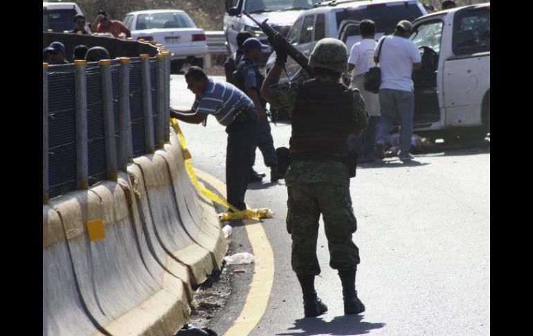 México | Comandante resulta lesionado durante una emboscada Matan a cuatro escoltas de jefe policiaco en Guerrero Un grupo armado disparó contra el jefe de la Zona Norte del Estado Por: EFE 28 de febrero de 2011 - 20:01 hs Un soldado monta guardia en el sitio donde el jefe de la Zona Norte de Guerrero y sus escoltas fueron atacados. EFE / CHILPANCINGO, GUERRERO (28/FEB/2011).- Cuatro escoltas de un jefe policiaco de Guerrero murieron hoy en una emboscada que le tendió un grupo de sicarios, informaron autoridades locales. El ataque tuvo lugar esta tarde en la capital del estado, Chilpancingo, cuando un grupo armado disparó contra el jefe de la Zona Norte de Guerrero, Humberto Velázquez Delgado, quien resultó herido, mientras que cuatro de sus escoltas murieron. El director de la Policía Investigadora Ministerial, Fernando Monreal, informó de que sobre las 15:00 hora local la comitiva fue agredida con armas largas AK-47 en el punto conocido como la curva del Cristo, en la carretera federal que comunica a Chilpancingo con Cuernavaca. "Los agresores los estaban esperando y los emboscaron" a cinco kilómetros al norte de la capital guerrerense. En la refriega resultaron muertos los elementos de la PIM Agustín Ocampo, Jaime Palacios, Hermenegildo Morales y Carlos Gallardo, adscritos al destacamento de Iguala de la Independencia, a 100 kilómetros al norte de Chilpancingo. El comandante y jefe de la zona norte del estado, Humberto Velázquez, resultó herido y trasladado a un hospital privado. En el lugar quedaron al menos 400 casquillos percutidos de AK-47 conocidos como "cuernos de chivo", añadieron las fuentes. Hasta el momento se desconoce el móvil de la agresión, pero no se descarta un ajuste de cuentas del crimen organizado. Elementos de la Policía del Estado y Ejército Mexicano implementan un operativo en busca de los agresores. Temas Crimen Organizado Guerrero Agresiones a policías Lee También Por segundo día, incendian vehículos en Teocaltiche Decomisan coches con reporte de robo y armas en Teocaltiche ¿Cómo se despliegan los cárteles mexicanos en Australia? Hernán cuida a Adán y ataca a Audomaro Recibe las últimas noticias en tu e-mail Todo lo que necesitas saber para comenzar tu día Registrarse implica aceptar los Términos y Condiciones