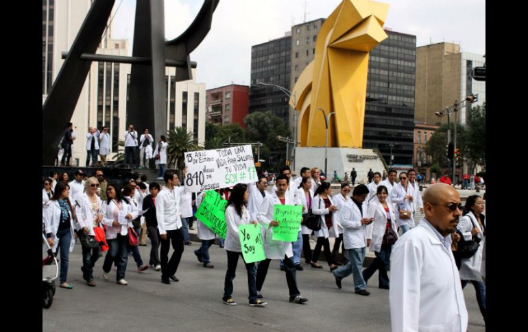 México | Más de dos mil lograron ingresar al Zócalo, donde gritaron ''no somos asesinos'' Médicos marchan en DF, solidarios con colegas jaliscienses Más de dos mil lograron ingresar al Zócalo, donde gritaron ''no somos asesinos'' Por: SUN 22 de junio de 2014 - 11:59 hs Reclaman falta de abasto en medicinas, carencia de personal y saturación de servicios. SUN / CIUDAD DE MÉXICO (22/JUN/2014).- Más de dos mil médicos iniciaron la mañana de este domingo una marcha sobre avenida Juárez, en el centro de la ciudad de México. Los médicos se han sumado al #YosoyMédico17, en protesta por los 16 médicos del Centro Médico Occidente de Guadalajara, Jalisco, a quienes se les dictó auto formal prisión por negligencia médica, tras la muerte de un joven de 15 años en 2010. Esta marcha logró conjuntar a todas las instituciones de salud como son el Instituto Mexicano del Seguro Social (IMSS), Instituto de Seguridad y Servicios Sociales de los Trabajadores del Estado (ISSSTE), Secretaría de Salud, hospitales del gobierno capitalino y privados del país. A diferencia de los maestros, después de jaloneos entre médicos y Policía capitalina, los manifestantes lograron ingresar al Zócalo por la calle Tacuba, en donde se pronunciarán diversos mensajes frente a Palacio Nacional para exigir que sean liberados sus compañeros en Guadalajara, Jalisco; bajo gritos de "no somos uno somos 17", miles de médicos se preparan para el mitin. Los médicos quienes portan sus batas blancas y sus estetoscopios gritaban "somos médicos", "no somos asesinos", y han reclamado la falta de abasto de medicinas, la carencia de personal y saturación de los servicios que se han convertido en un común denominador en todas las instituciones de salud del país. Temas Estados Ciudad de México Manifestaciones en la Cd. de México Salud general Recibe las últimas noticias en tu e-mail Todo lo que necesitas saber para comenzar tu día Registrarse implica aceptar los Términos y Condiciones