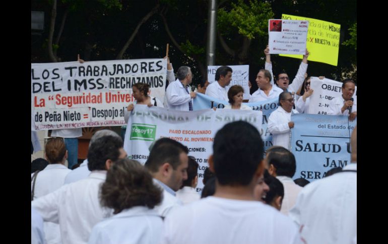 México | Personal de Salud se moviliza contra la llamada universalización del sector Médicos se manifiestan en diferentes estados del país Personal de Salud se moviliza contra la llamada universalización del sector Por: SUN 22 de junio de 2016 - 16:01 hs Los médicos piden certeza de sus condiciones laborales, infraestructura y equipamiento para la salud. SUN / CIUDAD DE MÉXICO (22/JUN/2016).- Este miércoles, médicos y empleados del sector Salud se manifiestan en diferentes estados del país en contra de la reforma a la Ley General. La movilización fue convocada en redes sociales por el grupo de médicos #YoSoy17, quienes también piden terminar contra la violencia que sufren los médicos, así como personal del sector, quienes denuncian que han sufrido de amenazas, secuestros y muertes violentas; así como la certeza de las condiciones laborales, infraestructura y equipamiento para la salud. Aguascalientes Alrededor de 180 médicos y enfermeras y enfermeros se instalaron este miércoles frente a Palacio de Gobierno después de realizar una marcha por la zona centro de esta ciudad, en contra de la universalización de los servicios de Salud. La protesta del Movimiento "#YoSoyMédico17" en la Plaza Principal se empató con la de un contingente de maestros y estudiantes que se manifiestan en apoyo de los maestros de Oaxaca y en contra de la violencia registrada en aquella entidad. Los doctores y personal de salud informaron que la protesta se realiza sin afectar la atención en los hospitales del Instituto de Salud del Estado, ISSSTE e IMSS. "Los médicos no son criminales, ni un pasante más muerto, no a la reforma a la salud, medicamentos y medicinas, cese a la violencia en el país", demandan los doctores. Ciudad de México Médicos y enfermeras marcharán esta tarde del Hospital General hacia la Secretaría de Salud. Los empleados de las unidades médicas se concentrarán a las 16:00 horas en el Hospital General, ubicado en la colonia Doctores, para dirigirse a la sede de la Secretaría de Salud, en la calle de Lieja y Paseo de la Reforma. Se espera que a esta movilización se sumen integrantes de la Coordinadora Nacional de Trabajadores de la Educación (CNTE) y alumnos de la Universidad Nacional Autónoma de México (UNAM). Chiapas En Tuxtla Gutiérrez, San Cristóbal de las Casas, Las Margaritas y Tapachula, los médicos y enfermeras marcharon para informar que están en asamblea permanente para pedir la dotación de insumos. En las marchas, denunciaron que trabajan desde hace varios meses sin medicamentos. En Las Margaritas informaron que el hospital básico comunitario de 12 camas trabaja para atender a 110 mil personas. Sin embargo, aseguraron que el nosocomio trabaja sin equipo de rayos X y de lavado. En ese lugar participaron en la marcha indígenas de la selva y Las Cañadas. En San Cristóbal de las Casas, el personal del sector salud recorrió las calles para culminar con un mitin el centro. En Tapachula y Tuxtla Gutiérrez también demandaron medicinas para los hospitales que atienden a más de 500 mil habitantes. Coahuila Un grupo de 12 médicos integrantes del movimiento #YoSoyMédico17 protestó en la ciudad de Torreón, Coahuila, donde denunció el riesgo que enfrentan doctores y pasantes en algunas zonas alejadas de la zona urbana. Los manifestantes aseguraron que en distintas regiones se han registrado homicidios, violaciones y secuestros. Se plantaron con pancartas en la explanada de la presidencia de Torreón y aprovecharon para pedir la remoción de plazas peligrosas. Dijeron que en esta ciudad hay escasez de insumos y déficit de doctores, por lo que opinaron que con el seguro popular se les cargaría el triple de pacientes, con menos insumos y menos recursos humanos. Los médicos en Torreón también exigieron que el servicio social sea como las demás carreras, de seis meses, y que se modifique la dinámica de trabajo, pues consideraron que hay un exceso en la carga laboral. Guerrero Médicos y enfermeras realizaron una marcha desde las instalaciones del ISSSTE, ubicado al sur de Chilpancingo, rumbo al Congreso de Guerrero. Los trabajadores manifestaron su rechazo a la reforma en materia de salud y además se sumaron a las protestas en contra de la reforma educativa y la violencia en Nochixtlán, Oaxaca. La marcha partió alrededor de las 13:30 horas y en estos momentos los inconformes se encuentran en el Congreso. Los manifestantes rechazan un seguro universal que sólo atienda enfermedades mínimas, que obligaría a los trabajadores a pagar por los servicios médicos en enfermedades crónicas, dijeron. Guanajuato De bata blanca y con un moño en colores rojo y negro en el hombro, una veintena de doctores se concentró a las 8:00 horas en la explanada del emblemático Arco de la Calzada portando una cartulina con la leyenda "No a la violencia gubernamental". Por más de una hora permanecieron en el lugar en el que dijeron haber sido convocados por el pediatra Anastasio López Álvarez, presidente del Colegio de Pediatría y que decidieron abrir con la manifestación al concluir su turno laboral; asimismo, comentaron que durante el día sus colegas harán expresiones de inconformidad en clínicas públicas. Una médica comentó que entre sus compañeros existe temor de represalias y a perder su empleo, por lo que hubo poca respuesta a la convocatoria. Los participantes, en su mayoría pediatras, dijeron pertenecer al Hospital General Regional de León, al ISSSTE y al IMSS. Tabasco En Tabasco, la Sociedad Médica del Hospital "Gustavo A. Rovirosa" apoyados por doctores del Instituto Mexicano del Seguro Social se manifestaron durante dos horas de manera pacífica con pancartas exigiendo el respeto a su labor y en contra de la reforma a la Ley General de salud. Sin afectar los servicios de urgencia y otras especialidades, los galenos señalan que a pesar de los esfuerzos de la actual administración por superar las deficiencias del sector salud, aún persi