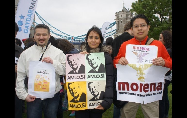 México | En distintas ciudades del mundo hay manifestaciones a favor del tabasqueño Mexicanos en el mundo apoyan a López Obrador El candidato presidencial del Movimiento Progresista agradece el respaldo que se realiza fuera de México en pro de sus aspiraciones a la Presidencia de la República Por: NTX 20 de mayo de 2012 - 21:08 hs Manifestación en Londres en apoyo a López ObradorUnas 70 personas manifestaron hoy su apoyo en la capital británica al candidato de la coalición Movimiento Progresista para la presidencia de México, Andrés Manuel López Obrador. En un día inusualmente frío para Londres a finales de mayo, el grupo de simpatizantes portaba pancartas con leyendas como ''Por un México del sexto sol'', ''México necesita AMLOve'', ''Mexicanos en UK queremos sol para México'', así como banderas de México y del Reino Unido. Estudiantes de posgrado, profesionistas de la zona financiera de la City y amas de casa de Londres, Birmingham y Nottingham se dieron cita en punto de las 14:00 hora local (13:00 GMT), a orillas del emblemático Tower Bridge de Londres, en el malecón del Río Támesis. Los manifestantes confiaron en que López Obrador tiene posibilidades de ganar en las elecciones presidenciales, a pesar de que la mayoría de las encuestas ubica al candidato del Partido Revolucionario Institucional (PRI), Enrique Peña Nieto, al frente de las preferencias. Manifestación en Bruselas reúne a unos 50 mexicanos Unos 50 mexicanos residentes en Bélgica se reunieron hoy en Bruselas al pie del Atomium, el monumento más emblemático del país, para expresar su apoyo al candidato presidencial Andrés Manuel López Obrador. La manifestación tuvo lugar pese a la denegación de permiso por parte de la policía belga. Para evitar cualquier problema, los organizadores convirtieron la marcha en un picnic en el parque donde se sitúa el monumento. Los participantes, algunos vestidos con camisas de la selección mexicana de futbol, blandían la bandera nacional y llevaban pancartas con los lemas de campaña del candidato de la coalición Movimiento Progresista. Entre ellas se leía ''Sólo el pueblo puede salvar al pueblo'', ''Otro México es posible'' o ''El cambio verdadero está en tus manos''. Manifestantes en Washington se unen a López Obrador Decenas de mexicanos residentes en Estados Unidos se manifestaron hoy frente a la Casa Blanca, en apoyo al candidato del Movimiento Progresista a la presidencia de México, Andrés Manuel López Obrador. Portando pancartas con diversas consignas y una bandera mexicana, medio centenar de hombres y mujeres permanecieron casi una hora frente a la residencia presidencial estadunidense, bajo la atenta mirada de agentes del Servicio Secreto. Algunos turistas que visitaban el sitio sobre la avenida Pensylvania, uno de los puntos más populares de la capital, se acercaron con curiosidad al grupo atraídos por la consigna de ''¡Es un honor estar con Obrador!''. Mexicanos expresan respaldo a López Obrador en Nueva York En tanto, al igual que en 20 ciudades en el mundo y en la capital mexicana, unos 80 mexicanos se reunieron en Nueva York para expresar su respaldo a López Obrador. ''El objetivo es demostrar que hay mucha gente en Nueva York que está con Andrés Manuel. El reto ahora es generar ruido en las redes sociales para que nuestro mensaje llegue a las personas de México'', afirmó Lorena Patiño, coordinadora de la demostración. Fundadora del Movimiento de Regeneración Nacional (Morena) en Nueva York, Patiño y otros simpatizantes de López Obrador se reunieron poco después del mediodía en el parque bajo el representativo Puente de Brooklyn. Temas PRD AMLO Partido del Trabajo Elecciones México 2012 Movimiento Ciudadano Recibe las últimas noticias en tu e-mail Todo lo que necesitas saber para comenzar tu día Registrarse implica aceptar los Términos y Condiciones
