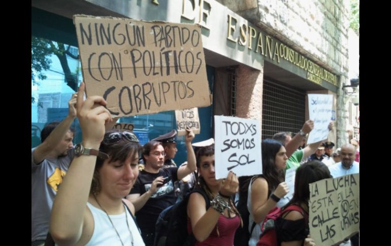 México | Acuden a las embajadas españolas con demandas de un cambio sociopolítico Mexicanos se unen al movimiento de los 'indignados' de España Acuden a las embajadas españolas con demandas de un cambio sociopolítico Por: EFE 21 de mayo de 2011 - 13:16 hs Imagen de la movilización en la embajada de España en la ciudad de México difundida en Twitter por @GadeHerrera. ESPECIAL / Miles de personas mantienen en Españasus protestas en jornada de reflexiónMÉXICO (21/MAY/2011).- Un grupo de alrededor de 100 personas se concentraron ante la embajada de España en México para sumarse a las protestas del "Movimiento 15-M", que demanda una regeneración democrática y un cambio del sistema económico que ha conducido a la grave crisis económica que vive España. En las pancartas que portaban se podían leer mensajes como "Desde el presente hacia el futuro comenzando ya" o "Estamos con Sol". Algunos de los mensajes contenían alusiones políticas ("Yo valgo más que un voto" o "Ningún partido con políticos corruptos") pero ninguna enviaba un mensaje a favor de determinado grupo político en este día de jornada de reflexión antes de las elecciones autonómicas y municipales españolas. Entre los presentes se encontraba el escritor mexicano de origen asturiano Paco Ignacio Taibo II. A primera hora de la tarde la concentración transcurría sin incidentes y sin cortar el tráfico aunque era vigilada por policías del Distrito Federal. "Según va pasando el tiempo, irá viniendo más gente", explicó a Efe una joven que esperaba más presencia de personas conforme pasen las horas y se acerquen las 18:00 horas, cuando está previsto que la concentración quede disuelta. Con la movilización, antecedida por otra menos concurrida el pasado día 18, México se suma a las protestas de los últimos días en Bogotá, Buenos Aires, Montevideo, Santiago de Chile, Managua, Quito, Sao Paulo y Santo Domingo, así como en otras ciudades europeas. En general las protestas en América Latina han estado formadas por grupos pequeños, integrados por jóvenes que han expresado su respaldo a este movimiento crítico. Los miles de jóvenes que durante estos días se han adherido al "Movimiento 15-M" piden cambios de fondo en la democracia y la economía españolas para mejorar sus actuales perspectivas, marcadas por la precariedad laboral y el desempleo en muchos casos. Temas España Estados Manifestaciones en México Lee También Estos son los estados en alerta por posible propagación de dengue Despliegan operativo tras bloqueos en Chiapas Este será el costo del Gas Bienestar en la semana del 13 al 18 de octubre Viral: vendedor de carnitas es detenido por matar a extranjero a tubazos en la CDMX Recibe las últimas noticias en tu e-mail Todo lo que necesitas saber para comenzar tu día Registrarse implica aceptar los Términos y Condiciones