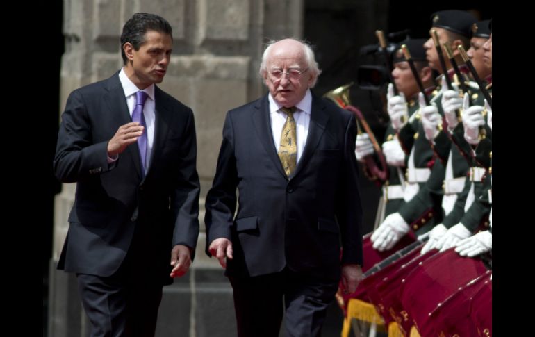 México | Podría visitar el país para celebrar los 40 años de relación diplomática bilateral México, principal inversionista de Irlanda: Peña Podría visitar el país para celebrar los 40 años de relación diplomática bilateral Por: SUN 21 de octubre de 2013 - 15:07 hs Enrique Peña Nieto (i) camina junto al mandatario de Irlanda Michael Higgins (d) en una guardia de honor. AP / CIUDAD DE MÉXICO (21/OCT/2013).- Al darle la bienvenida oficial a su homólogo de Irlanda, Michael D. Higgins, el Presidente Enrique Peña Nieto destacó que México es el principal inversionista y socio comercial en América Latina de Irlanda. "Irlanda es un país importante para México", dijo Peña Nieto al anunciar que recibió una invitación por parte del presidente de Irlanda para celebrar 40 años de relación diplomática entre ambas naciones. El Presidente destacó que este lunes se firmaron diversos acuerdos en materia educativa con Irlanda, además de otros entre empresas de ambos países para un mayor intercambio comercial. "Derechos Humanos, combate al cambio climático y el combate al hambre son temas que también se han tratado en esta reunión bilateral", subrayó Peña. "México es su casa, sea bienvenido señor Presidente Michael D. Higgins", dijo Peña. Por su parte del presidente de Irlanda, Michael D. Higgins, dijo en su mensaje que es un enorme placer visitar "esta enorme ciudad". "Nuestros pueblos tienen mucho más que ofrecerse", resaltó. El presidente de Irlanda dijo que invitó al presidente Peña Nieto a visitar Irlanda para profundizar su relación bilateral. "Espero que muchos mexicanos estudien en Irlanda mediante los acuerdos que hoy se han firmado. Con los convenios hoy firmados unimos a las empresas y universidades de nuestros países", indicó. México e Irlanda trabajarán por la paz: Peña México e Irlanda trabajarán en favor del libre comercio, desarme nuclear, por la paz y defensa de derechos humanos, afirmó Peña Nieto. El jefe del Ejecutivo atestiguó este lunes, junto con el mandatario de Irlanda, Michael D. Higgins, la firma de convenios en comunicación aérea, desarrollo tecnológico, empresarial y educación superior. El presidente irlandés depositó esta mañana una ofrenda floral en honor a los Niños Héroes y ayer hizo lo propio para recordar al Batallón de San Patricio. Peña Nieto destacó que la historia une a México e Irlanda. "Un valeroso grupo de irlandeses ayudó a defender a México de la invasión extranjera de 1847", resaltó. Peña Nieto y D. Higgins sostuvieron una reunión ampliada con sus respectivas comitivas. Entre la firma de documentos que ambos mandatarios atestiguaron están los memorándum de entendimiento entre el Instituto Tecnológico y de Estudios Superiores de Monterrey (ITESM) y la Dublin City University. En el acto estuvieron presentes los secretarios de Relaciones Exteriores, José Antonio Meade, y de Economía, Ildefonso Guajardo, así como el Ministro de Estado para Comercio y Desarrollo de Irlanda, Joe Costello, entre otros. Temas Gobierno de México Enrique Peña Nieto Irlanda Lee También Este será el costo del Gas Bienestar en la semana del 13 al 18 de octubre Autos con estas placas deben realizar la Verificación Vehicular antes del 31 de octubre Viral: vendedor de carnitas es detenido por matar a extranjero a tubazos en la CDMX ¿Cuánto cuestan y dónde comprar boletos para el México vs Ecuador? Recibe las últimas noticias en tu e-mail Todo lo que necesitas saber para comenzar tu día Registrarse implica aceptar los Términos y Condiciones