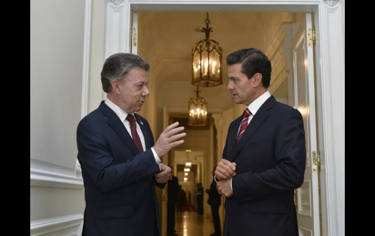 BOGOTÁ, COLOMBIA (27/OCT/2016).- Los gobiernos de México y Colombia acordaron la tarde de este jueves profundizar los mecanismos de cooperación que mantienen a fin de fortalecer la lucha contra los grupos del crimen organizado que operan las dos naciones.En un mensaje conjunto, los presidentes Enrique Peña Nieto y Juan Manuel Santos aceptaron que ambas naciones tienen retos similares en la lucha contra los grupos criminales que operan en cada nación y de manera transnacional.En el marco de la Visita de Estado que realizó a Colombia, el Presidente Peña fue recibido con honores militares en la Casa de Nariño por su homólogo colombiano a fin de revisar la relación binacional a la que han elevado al nivel de "estratégica".Luego de trabajar en privado en el Palacio Presidencial de Colombia, en un mensaje conjunto el Presidente Peña Nieto hizo notar la gran cooperación entre México y Colombia, como ninguna con otro país de América Latina, en materia de seguridad."Tenemos una colaboración cotidiana, actualizada, minuto a minuto, precisamente para hacerle frente a los desafíos que enfrentamos ambas naciones en el combate a la inseguridad."Hoy hemos hablado de extender esta cooperación a efecto de poder combatir con mayor eficacia al crimen organizado. Colombia y México somos dos naciones que a final de cuentas enfrentamos problemas en materia de seguridad muy similares''."Tenemos presencia de cárteles que operan en ambas naciones y de forma transnacional, hemos sido testigos de cómo el avance institucional para combatir al crimen organizado ha sido menos acelerado de las capacidades que organizaciones criminales han alcanzado en ambas naciones".Subrayó que por eso se han propuesto profundizar su colaboración y cooperación en materia de seguridad para enriquecer las políticas públicas que siguen ambos gobiernos para combatir al crimen organizado.Lo anterior "a partir de lo que reconocemos nos es un problema común, es un problema que además tiene aristas muy similares en las formas de operación y el mercado al que dirigen sus tareas las organizaciones criminales tanto en Colombia como en México. Habremos de profundizar nuestras colaboración en esta asignatura".En su intervención, el presidente Juan Manuel Santos hizo notar el nivel de comercio y turismo que han alcanzado los dos países al quintuplicarse desde la entrada en vigor de la Alianza del Pacífico, de la que los dos países forman parte, al pasar de 80 mil a más de 350 mil en un año.Hizo notar que está en operación una plataforma de información migratoria en tiempo real, lo que ha ayudado al flujo de turistas y empresarios, pero también en la lucha contra el crimen organizado de la región."México y Colombia tenemos retos similares en la lucha contra el crimen organizado y ahí hemos venido colaborando mucho, se hizo un inventario de todo lo que hemos hecho juntos y de lo que podemos hacer, podemos hacer mucho más y tomamos decisiones importantes en este frente: seguiremos cooperando en la lucha contra la delincuencia trasnacional y el narcotráfico".Comentó que el gobierno de Colombia ha apoyado a la capacitación de más de seis mil 500 miembros de las fuerzas públicas de México en materia de inteligencia, antisecuestro y contra la extorsión.