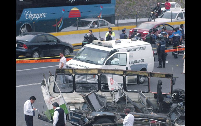 México | Una unidad del transporte público se queda sin frenos y se impacta contra una camioneta Microbuzaso deja seis muertos Una unidad del transporte público se queda sin frenos y se impacta contra una camioneta Por: SUN 6 de noviembre de 2011 - 01:14 hs Por el choque, 20 personas quedaron lesionadas. EFE / CIUDAD DE MÉXICO (06/NOV/2011).- Un microbús de la Ruta 1 se quedó sin frenos al ingresar al Viaducto Tlalpan y se impactó contra una camioneta, son saldo de seis personas fallecidas, además de al menos 20 lesionados. La unidad del transporte público del Distrito Federal prácticamente se desbarató tras el choque aparatoso. En el lugar del percance perdieron la vida seis personas, tres mujeres, dos hombres y una menor, mientras que las 20 lesionadas fueron trasladadas a diferentes hospitales en la zona. El conductor del microbús, identificado como Isaías Martínez Torres, de 25 años, fue detenido. Temas Estados Accidentes México Distrito Federal Lee También Helicóptero se desploma en Huntington Beach, California; reportan cinco heridos Tres personas resultan lesionadas tras explosión de camión en carretera México-Puebla Reformas a Ley de Amparo no limita derechos ciudadanos Festival del Pan de Muerto en CDMX: Fechas, horarios y actividades Recibe las últimas noticias en tu e-mail Todo lo que necesitas saber para comenzar tu día Registrarse implica aceptar los Términos y Condiciones