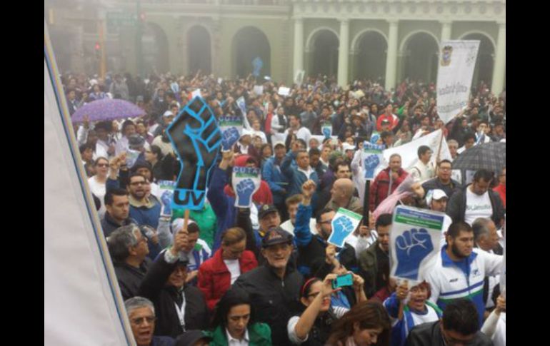 México | Catedráticos y estudiantes de la UV toman las calles para exigir sus derechos Miles de universitarios marchan en Veracruz Catedráticos y estudiantes de la UV toman las calles para exigir sus derechos Por: SUN 10 de marzo de 2016 - 12:42 hs La rectora reprocha la actitud del Gobierno con la casa de estudios. TWITTER / @SaraLdeG XALAPA, VERACRUZ (10/MAR/2016).- Miles de catedráticos, estudiantes y ex alumnos de la Universidad Veracruzana tomaron las calles de las principales ciudades del estado para exigir el pago de adeudos, la autonomía presupuestaria y su rechazo a posibles reformas a la ley del sistema de pensiones. Encabezados por la rectora de la casa de estudios, Sara Ladrón de Guevara, los universitarios se manifestaron en los cinco campus y en las principales ciudades de Veracruz, con lo cual cerca de 80 mil alumnos suspendieron clases. Lo mismo en la ciudad de Xalapa -capital del estado-, que en Veracruz, Boca del Río, Córdoba, Orizaba, Tuxpan, Poza Rica, Coatzacoalcos, Minatitlán, entre otras, cientos de universitarios exigieron al gobierno de Javier Duarte de Ochoa el pago de adeudos. Sin importar el mal tiempo, en la ciudad de Xalapa tan sólo se congregaron más de diez mil personas, según los organizadores de la movilización universitaria, a la cual se sumaron ex rectores y ex funcionarios estatales egresados de la casa de estudios. La rectora, Sara Ladrón de Guevara González, reprochó la actitud del Gobierno del estado de reconocer y luego negar el adeudo que mantiene con la máxima casa de estudios de la entidad. En entrevista previa a la marcha, indicó que la comunidad universitaria está unida y determinada a defender sus derechos, a defender la educación superior pública y que a eso están convocados. "La comunidad universitaria estamos unidos y va más allá de nuestros maestros, empleados y estudiantes; son también nuestros egresados de más de siete décadas de trabajo; son nuestros jubilados, quienes dieron la vida a la Universidad Veracruzana; son los empresarios, los funcionarios públicos, todos los que han recibido la generosidad de nuestra alma mater". En un hecho sin precedentes, la rectora aseguró que esta lucha por la Universidad superior pública es apoyada por universidades de todo el país e incluso por aquellas que se encuentran en el extranjero. La Universidad Veracruzana demanda el pago de dos mil millones de pesos de adeudos, así como establecer legalmente el cinco por ciento del presupuesto estatal a la casa de estudios y frenar reformas a la ley del sistema de pensiones. El gobierno estatal anunció que está dispuesto a pagar cerca de 500 millones de pesos pero el resto no porque se trata de un subsidio que la ley no le obliga a cumplir; además ofreció establecer un tres por ciento del presupuesto a la Universidad y anunció que retiró reformas al sistema de pensiones. Temas Estados Veracruz Jóvenes Universidades Manifestaciones en México Lee También ¿Trump ganaría el Nobel de la Paz? Veteranos del Comité de premiación responden El SAT va contra factureras; pondrá "piso parejo" en pago de impuestos "Raymond" aparecerá en horas y afectará a estos estados por su trayectoria Lluvias en CDMX: Pronóstico de lluvia hoy, 9 de octubre, a esta hora Recibe las últimas noticias en tu e-mail Todo lo que necesitas saber para comenzar tu día Registrarse implica aceptar los Términos y Condiciones
