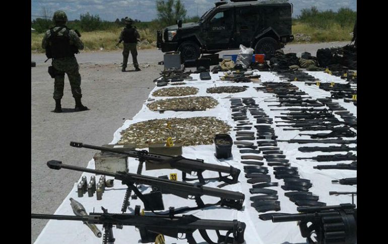 CIUDAD DE MÉXICO (07/JUL/2017).- Elementos del Ejército Mexicano de la VIII Zona Militar, con sede en Reynosa, Tamaulipas, aseguraron en Nuevo Laredo un arsenal a la delincuencia organizada.La Secretaría de la Defensa Nacional (Sedena) informó que aseguró 78 fusiles AR-15 calibre 0.223, siete AK-47 calibre 7.62x39 milímetros, tres fusiles Barret 0.50, dos fusiles G-3 calibre 7.62x59 milímetros, dos rifles, cinco lanza granadas y 13 granadas.Además un cohete para RPG (anti-tanque), 30 mil cartuchos de diversos calibres, mil 030 cargadores para fusil AR-15, 349 cargadores para AK-47 y 20 uniformes camuflados tipo militar.La Sedena explicó que al realizar reconocimientos terrestres las tropas militares se percataron de la presencia de personas armadas en las inmediaciones de un inmueble ubicado en la colonia Toboganes de Nuevo Laredo.Apuntó que, al notar la presencia de los efectivos militares, las personas que estaban armadas emprendieron la huida a pie, con rumbo desconocido, por la parte posterior de la vivienda, en la cual se encontró el arsenal.El personal militar realiza las coordinaciones necesarias con el delegado estatal de la Procuraduría General de la República (PGR) para poner a disposición lo asegurado.La dependencia dejó en claro que estos resultados impactan en la organización e infraestructura de grupos criminales integrantes de la delincuencia organizada, que con sus acciones minan el desarrollo y la paz social de los tamaulipecos.