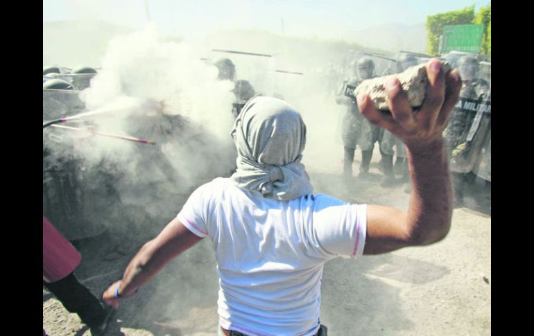 México | Exigen ingresar al 27 Batallón de Infantería para 'buscar' a sus hijos Militares y padres de normalistas se enfrentan en Iguala; hay 4 heridos Se manifiestan afuera del 27 Batallón de Infantería para exigir ingresar y 'buscar' a los estudiantes desaparecidos Por: EL INFORMADOR 13 de enero de 2015 - 03:23 hs Padres de los estudiantes desaparecidos y estudiantes de la normal rural de Ayotzinapa intentaron entrar a la zona militar 27. SUN / IGUALA, GUERRERO (13/ENE/2015).- Una protesta afuera del 27 Batallón de Infantería en Iguala terminó en un enfrentamiento que dejó cuatro heridos. Los padres de los normalistas desaparecidos y estudiantes de Ayotzinapa llegaron cerca del mediodía y exigieron ingresar al cuartel militar para “buscar” a los 42 normalistas desaparecidos desde el 26 de septiembre pasado. Ante la negativa de los militares, los inconformes tomaron por la fuerza un tráiler de una refresquera y derribaron la entrada. Los familiares lograron avanzar unos 20 metros, pero fueron recibidos por los militares con gases lacrimógenos y extinguidores para contenerlos. “Sólo venían a solicitar que se les permitiera el ingreso a la instalación militar para buscar a nuestros hijos porque nos dijeron que podían estar ahí, pero fueron desalojados violentamente”, se quejó el abogado de los padres, Vidulfo Rosales. Después del enfrentamiento que dejó al menos tres estudiantes y un padre de familia heridos, los familiares y maestros de la Coordinadora Estatal de Trabajadores de la Educación en Guerrero (CETEG) fueron a manifestarse en el 50 Batallón de Infantería de la 35 zona militar ubicado en Chilpancingo, donde quemaron una camioneta afuera de la entrada. El mes pasado, la Comisión Nacional de los Derechos Humanos (CNDH) solicitó a la Secretaría de la Defensa Nacional (Sedena) información sobre el posible papel de los militares del Cuartel Militar el día que desaparecieron los jóvenes. De acuerdo a testimonios de estudiantes, entre ellos el de Omar García, miembro del Comité estudiantil de Ayotzinapa, aseguró que aquella noche les pidieron ayuda a los militares tras la balacera, pero no la recibieron. “Nos decían cállense, ustedes se lo buscaron”. Hasta ahora sólo los restos de Alexander Mora han sido identificados mediante pruebas de ADN. Temas Estados Guerrero Manifestaciones en México Caso Ayotzinapa Lee También Clima en Ciudad de México hoy: el pronóstico para el domingo 12 de octubre de 2025 Reformas a Ley de Amparo no limita derechos ciudadanos Festival del Pan de Muerto en CDMX: Fechas, horarios y actividades "Raymond" baja su potencia, pero tocará tierra en horas Recibe las últimas noticias en tu e-mail Todo lo que necesitas saber para comenzar tu día Registrarse implica aceptar los Términos y Condiciones
