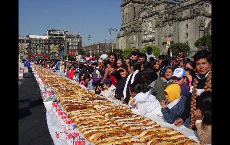 México | Midió 720 metros de largo y 90 centímetros de ancho Monumental Rosca de Reyes convoca a miles de asistentes Fue partida en el Zócalo capitalino por la secretaria de Desarrollo Económico; se trata de la más grande del mundo Por: NTX 2 de enero de 2011 - 12:24 hs Velázquez Alzúa destacó que la elaboración de la Rosca permite a la industria panificadora iniciar el año con un fuerte impulso. NTX / MÉXICO (02/ENE/2011).- Desde temprana hora centenares de capitalinos se reúnen en el Zócalo capitalino para degustar la Monumental Rosca de Reyes, que partió la secretaria de Desarrollo Económico, Laura Velázquez Alzúa. Mientras unos contentos saboreaban su pedazo de rosca y comentaban "mmm, está suavecita", otros hacían fila para recibir un pedazo del pan, que fue colocada alrededor de la plancha de la Plaza de la Constitución. La Rosca Monumental pesó nueve mil 375 kilos y a diferencia del año pasado, cuando midió 300 metros lineales, para 2011 se incrementó a más del doble con 720 metros de largo y 90 centímetros de ancho, para convertirse en la Rosca de Reyes más grande del mundo. Los trabajos para la colocación de la Rosca iniciaron a las 22:00 horas de ayer sábado y concluyeron a las 8:00 de la mañana de este domingo. En la elaboración de la megarrosca, que tuvo un costo de un millón 142 mil 800 pesos y se repartirá entre 300 mil capitalinos, participaron 300 panificadoras. Entre los capitalinos asistentes a esta celebración también se repartieron 250 mil cuartos de leche de forma gratuita. Con la representación del jefe de gobierno, Marcelo Ebrard, Velázquez Alzúa estuvo acompañada por el vicepresidente de la Cámara Nacional de la Industria Panificadora y Similares de México (Canainpa), Antonio Arias Ordóñez. La funcionaria aseveró que con esta acción el Gobierno del Distrito Federal (GDF) empieza el año con trabajo e incentivos a las micro y pequeñas empresas, que son las que sostienen la economía de la ciudad. Asimismo seguirá impulsado una política pública con expectativas positivas para reactivar a las micro, pequeñas y medianas empresas, que hoy por hoy son 99 por ciento de las unidades económicas asentadas en el Distrito Federal y son las generadoras de 56 por ciento de los empleos en la capital del país. Con el fin de apoyar a estas empresas, indicó que el gobierno local impulsará en la Asamblea Legislativa del Distrito Federal (ALDF) leyes que están pendientes y "necesitamos sacar adelante para tener más facilidades en la apertura rápida de negocios, el acceso a créditos y deducciones fiscales para incentivar la inversión". Velázquez Alzúa destacó que la elaboración de la Rosca de Reyes 2011 permite que la industria de la panificación en México iniciar el año con un fuerte impulso, con lo que se fortalece a los casi 400 mil empleos directos que genera este sector en la capital. Temas Estados Distrito Federal Día de Reyes Recibe las últimas noticias en tu e-mail Todo lo que necesitas saber para comenzar tu día Registrarse implica aceptar los Términos y Condiciones