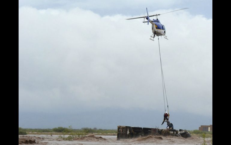México | César Duarte emite una alerta preventiva ya que se prevé la continuidad de torrenciales Muere una persona por lluvias en Chihuahua César Duarte emite una alerta preventiva ya que se prevé la continuidad de torrenciales en las próximas horas Por: XINHUA 21 de julio de 2013 - 15:57 hs Una familia es rescatada por un helicóptero debido a las grandes inundaciones en el estado. ARCHIVO / CHIHUAHUA, CHIHUAHUA (21/JUL/2013).- Al menos una persona murió y otra está desaparecida debido a las fuertes lluvias registradas en el estado de Chihuahua, informó hoy el gobernador César Duarte. En una rueda de prensa, el gobernante regional dijo que ante esa situación, se emitió una alerta preventiva, ya que se prevé la continuidad de torrenciales aguaceros en las próximas horas. Las intensas lluvias han dejado cuantiosas pérdidas económicas, ya que el viernes pasado fueron cancelados todos los vuelos, debido a la inundación en pistas, instalaciones y estacionamientos aledaños al aeropuerto internacional de la ciudad de Chihuahua, capital del estado. El mandatario estatal recomendó este domingo a las familias no salir si no es absolutamente necesario, y de preferencia que los niños se queden en casa. Además, los habitantes deben estar atentos a cualquier llamado de las corporaciones de seguridad en caso de emergencia. Los mayores efectos de las lluvias se han sentido en la ciudad de Chihuahua con inundaciones en esa terminal aérea. Al respecto, Duarte señaló que se realizan inspecciones para deslindar responsabilidades sobre la inundación en el aeropuerto, ya que la construcción de una barda y un estacionamiento provocaron la acumulación de aguas negras e inundación con daños a vehículos y pasajeros. Sin embargo, sostuvo que son más los beneficios que los daños por la lluvia, ya que ésta puede ser un detonante para la economía nacional con cosechas de 80 mil hectáreas de frijol, 50 mil de sorgo y maíz y más de 300 mil de avena. Temas Muertes Estados Chihuahua César Duarte Lee También EU alerta sobre posible ruptura del alto el fuego en Gaza por Hamás Verstappen se lleva la pole en Austin y presiona a los McLaren Sheinbaum descarta riesgo por crecimiento del río Pánuco en Tamaulipas Protestan contra Trump en Estados Unidos Recibe las últimas noticias en tu e-mail Todo lo que necesitas saber para comenzar tu día Registrarse implica aceptar los Términos y Condiciones