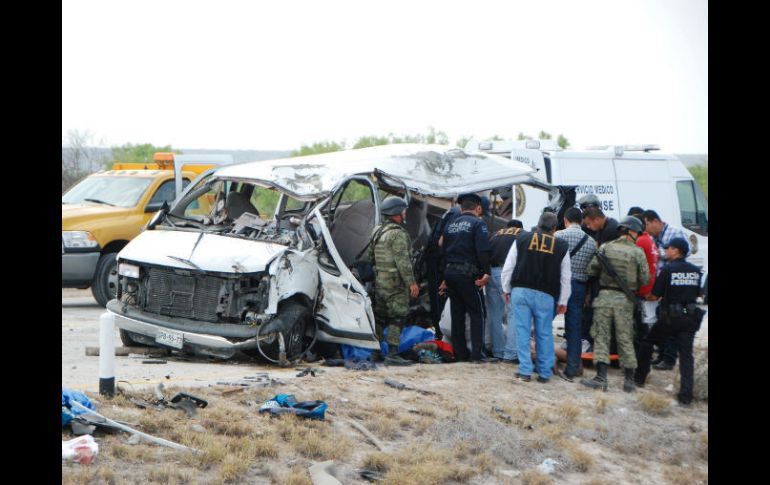 México | Los fallecidos pertenecen a la banda ''La Reyna de Monterrey'' Mueren diez músicos de Monterrey en accidente Miembros de la banda ''La Reyna de Monterrey'' mueren al chocar contra un tráiler Por: NTX 27 de abril de 2013 - 15:50 hs Elementos de la Policía Federal resguardan la zona para facilitar el trabajo de los paramédicos. NTX / MONTERREY, NUEVO LEÓN (27/ABR/2013).- Por lo menos 10 personas murieron y cinco más resultaron heridas al registrarse hoy un choque entre una camioneta y un tráiler sobre la autopista Monterrey-Nuevo Laredo, reportaron cuerpos de auxilio. De acuerdo con el informe preliminar, varios de los fallecidos pertenecen a la banda "La Reyna de Monterrey", ya que así lo exhibía la vestimenta que portaban y fueron identificados por el familiar de una de las víctimas. Señalan las autoridades que el accidente se registró alrededor de las 8:15 horas a la altura del kilómetro 103 de dicha vía federal, en el perímetro del municipio de Vallecillo, al noreste de esta capital. Elementos de la Policía Federal implementaron un dispositivo de resguardo en la zona para facilitar la labor de los paramédicos de la Cruz Verde y de ambulancias privadas que acudieron en ayuda de los lesionados. El reporte señaló que los cuerpos de algunas de las víctimas quedaron regados sobre los carriles de circulación de la autopista, por lo que las autoridades restringieron el tránsito en esa zona. Refiere el informe que en la camioneta tipo Van, con matrícula STB-95-73 de Nuevo León, se presume que viajaban 15 hombres, de los cuales 10 murieron y otros cinco quedaron heridos y fueron llevados a varios hospitales locales. De acuerdo con las primeras indagatorias, el conductor de la camioneta perdió el control de la unidad, invadió el carril contrario de la autopista y se impactó de frente contra un tráiler de la línea TNL Express. Temas Muertes Estados Nuevo León Accidentes México Lee También Isaac Fonseca busca revancha y triunfo en la “Corrida de las Luces” Esta es la verdadera identidad del "Juan Gabriel" captado en París t.A.T.u anuncia concierto en México: precio de boletos y cuándo salen a la venta ¿Será obligatorio presentar la CURP biométrica para trámites escolares? Recibe las últimas noticias en tu e-mail Todo lo que necesitas saber para comenzar tu día Registrarse implica aceptar los Términos y Condiciones