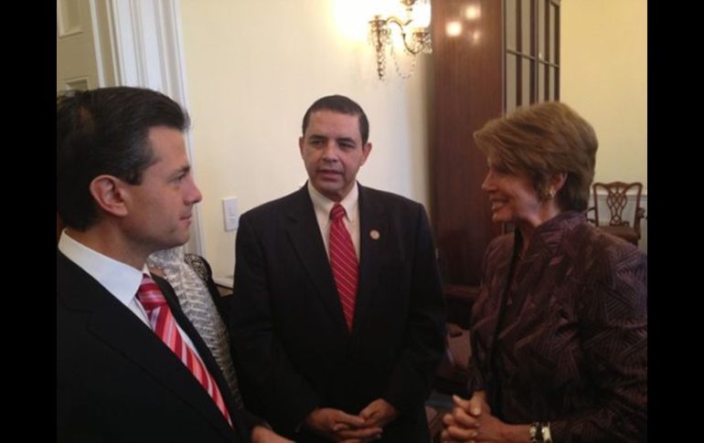 México | Peña Nieto se reúne en privado con la líder de la minoría demócrata Nancy Pelosi recibe a Enrique Peña Nieto en el Capitolio La reunión durará una hora 15 minutos en la sala de juntas H204 en el Capitolio de la Cámara de Representantes Por: NTX 27 de noviembre de 2012 - 12:06 hs Luis Videgaray tuiteó una foto de la reunión de Peña Nieto con la congresista. ESPECIAL / WASHINGTON, ESTADOS UNIDOS (26/NOV/2012).- El presidente de México, Enrique Peña Nieto se reúne en privado con Nancy Pelosi, líder de la minoría demócrata en la Cámara de Representantes de Estados Unidos. En la segunda reunión de su apretada agenda de trabajo de este martes, en su gira por Estados Unidos, Peña Nieto está acompañado por sus cinco coordinadores del equipo de transición, encabezados por Luis Videgaray Caso y Miguel Angel Osorio Chong. El cónclave de Peña Nieto con Nancy Pelosi es por espacio de una hora 15 minutos en la sala de juntas H204 en el Capitolio de la Cámara de Representantes. El coordinador general del equipo de transición del presidente electo de México, Luis Videgaray, tuiteó una foto de la reunión de Peña Nieto con la congresista. En su cuenta @LVidegaray: "En el Capitolio en Washington @EPN se reúne con Nancy Pelosi, líder de la minoría demócrata". Previamente tuiteó : " En el Capitolio en Washington @EPN se reúne con Nancy Pelosi, líder de la minoría demócrata". Temas Política Estados Unidos Enrique Peña Nieto Recibe las últimas noticias en tu e-mail Todo lo que necesitas saber para comenzar tu día Registrarse implica aceptar los Términos y Condiciones