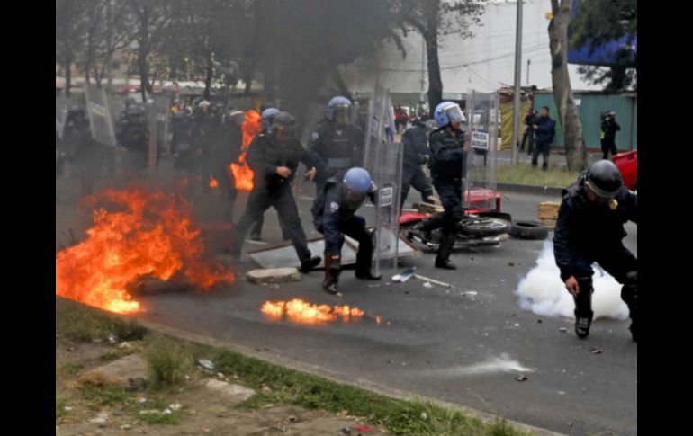 México | La policía indica que podrán salir de 10 en 10 siempre que no lleven objetos peligrosos Negocian salida de encapsulados del Aeropuerto de la Ciudad de México La policía indica que podrán salir de 10 en 10 siempre y cuando no lleven objetos peligrosos Por: SUN 20 de noviembre de 2014 - 15:05 hs CIUDAD DE MÉXICO (20/NOV/2014).- Elementos de la policía capitalina y un grupo de encapuchados negocian una salida para los manifestantes que este jueves se presentaron en las inmediaciones del Aeropuerto Internacional de la Ciudad de México (AICM). Luego de ser encapsulados cerca de Circuito Interior, la policía les indicó que podrán salir de 10 en 10 siempre y cuando dejen todos los objetos que atenten contra la paz pública. Hasta el momento la respuesta de los manifestantes es que si no salen en bloque no accederán. Alegan que de salir en grupos de 10, más adelante serán detenidos, por lo que la negociación continúa. Antes, se suscitó un enfrentamiento con la policía capitalina en el cruce del Circuito Interior y la Calzada Ignacio Zaragoza, donde se reportó un uniformado herido con petardo. Desde la mañana, los que se dicen estudiantes de distintas escuelas intentaron llegar al Aeropuerto Internacional de la Ciudad de México, sin embargo, el cinturón de seguridad de la policía capitalina lo impidió. Ante ello, los encapuchados buscaron otra forma de llegar y fue cuando se enfrentaron con los policías a quienes les arrojaron piedras y petardos. Las negociaciones las llevaron a cabo un grupo de paramédicos llamados "Marabunta" a quienes les fue notificado que los dejarían ir con dirección a la avenida Ignacio Zaragoza y de ahí cada grupo partirá hacia rumbos distintos. El grupo de granaderos comentó que los manifestantes pidieron que se les dejara salir hacia Circuito Interior, sin embargo, debido a que el lugar en donde fueron retenidos se encuentra cercano a las instalaciones del aeropuerto capitalino, esa posibilidad se anuló para evitar que se presenten agresiones en contra de las instalaciones. En este momento, el grupo de manifestantes realiza una consulta para determinar si la solución de los granaderos es viable. Durante la retención, los granaderos pidieron que les entregaran todas las cosas que llevaban como petardos, gasolina, navajas y además, entregaron un morral blanco el cual no se supo qué contenía. Temas Estados AICM Manifestaciones en la Cd. de México Manifestaciones en México Lee También Reformas a Ley de Amparo no limita derechos ciudadanos Festival del Pan de Muerto en CDMX: Fechas, horarios y actividades "Raymond" baja su potencia, pero tocará tierra en horas En Hidalgo, caminos destrozados complican rescates y ayuda Recibe las últimas noticias en tu e-mail Todo lo que necesitas saber para comenzar tu día Registrarse implica aceptar los Términos y Condiciones